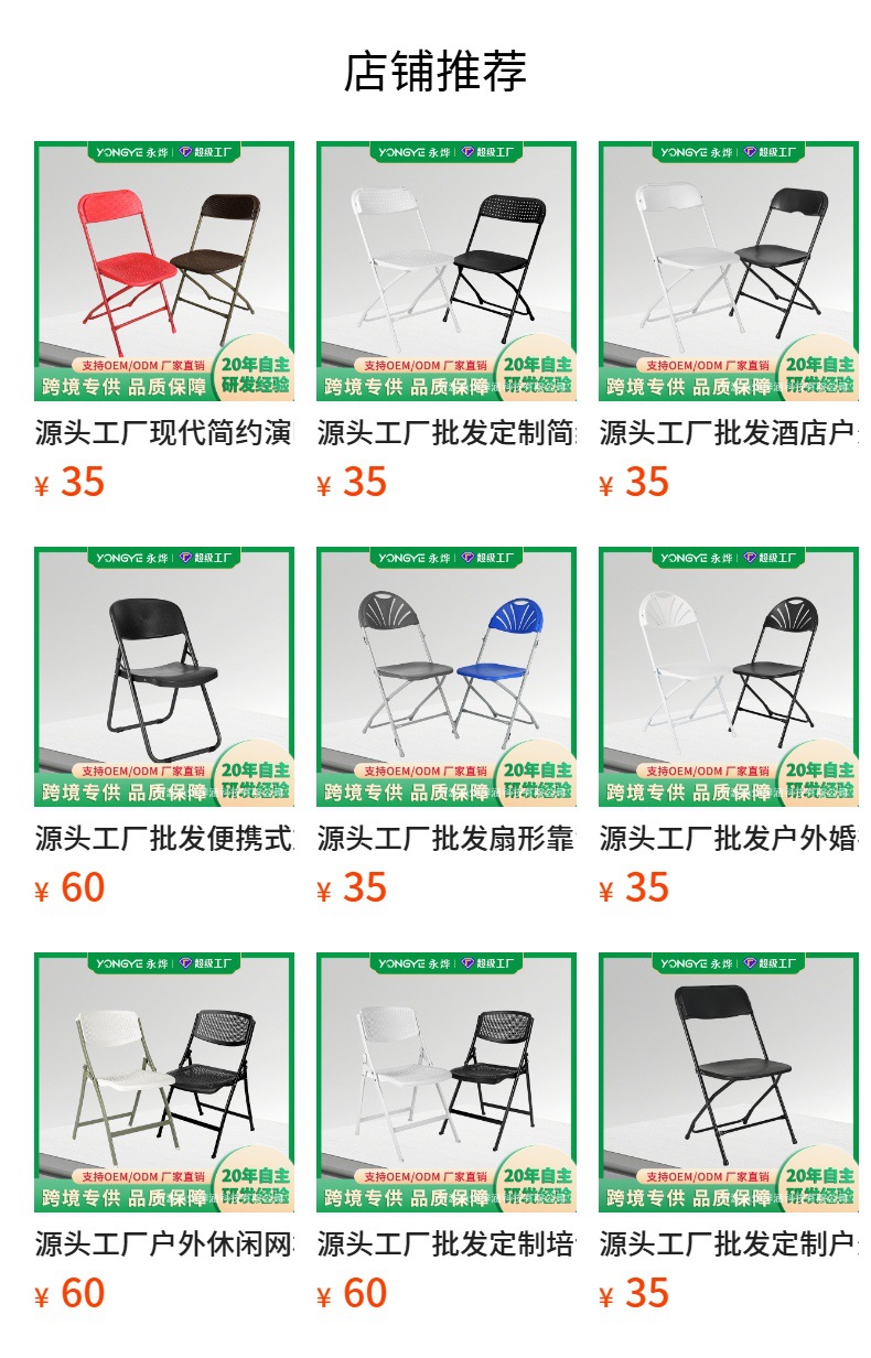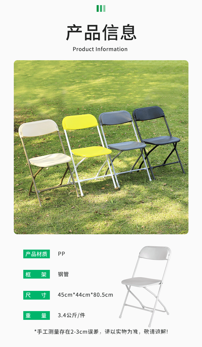 원천 공장 도매 심플 캐주얼 야외 결혼식 호텔용 휴대용 고품질 고하중 플라스틱 접이식 의자