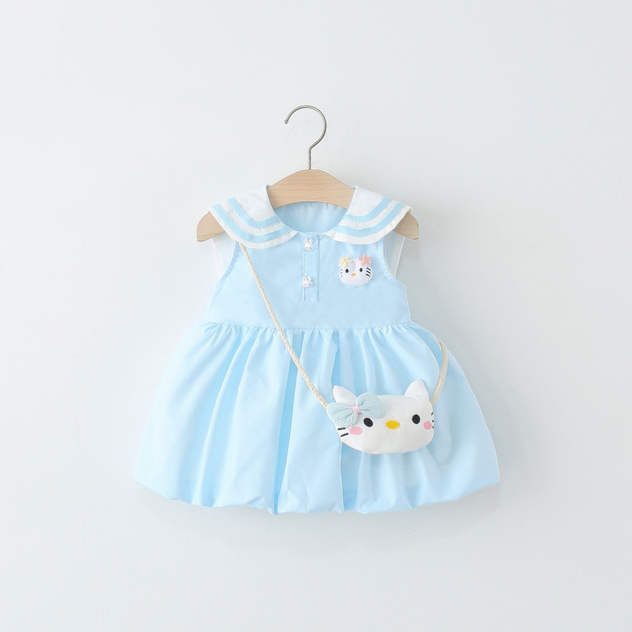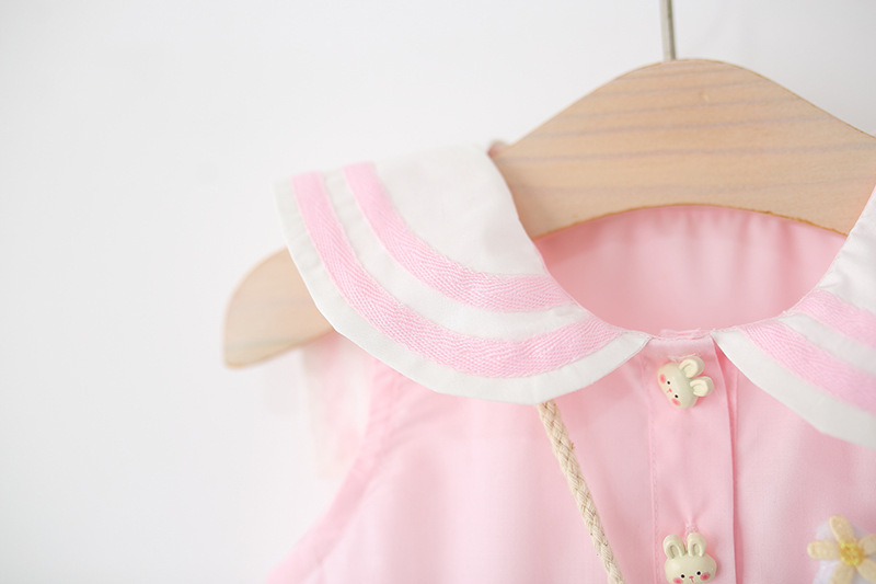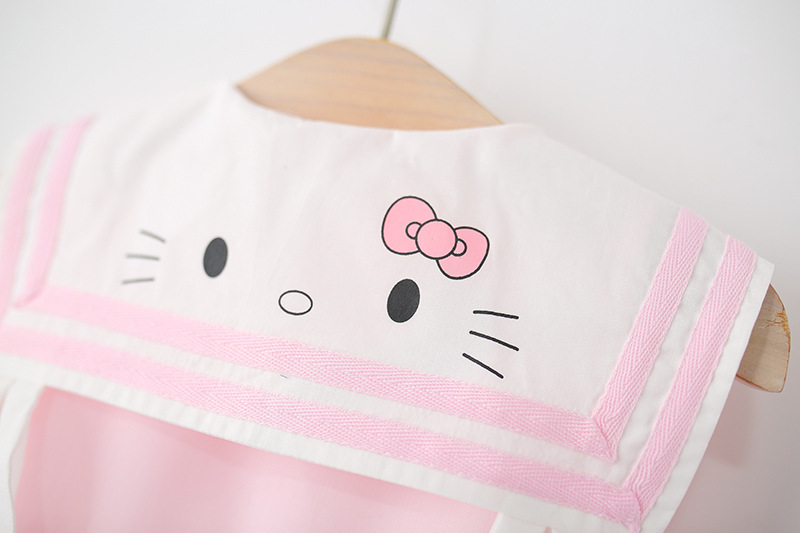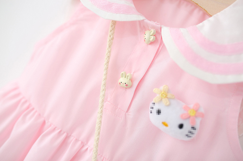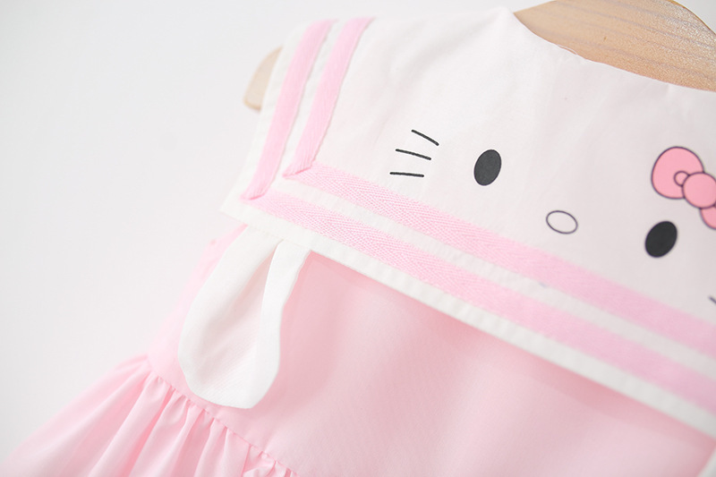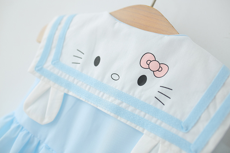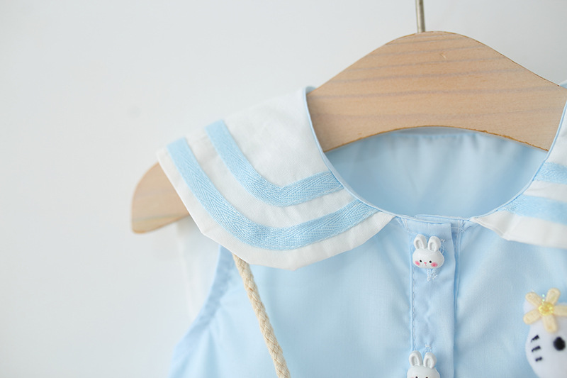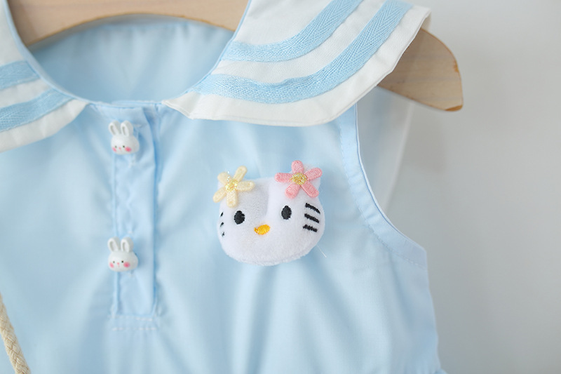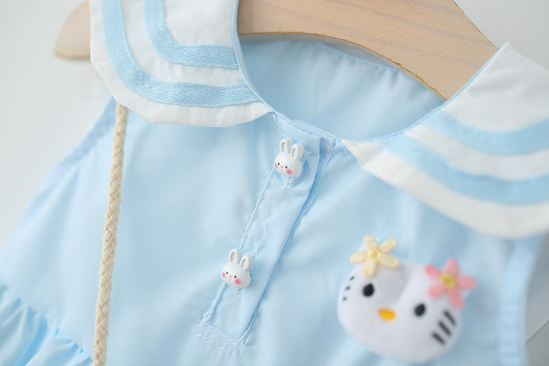 아동 의류 2025 새로운 여자 드레스 여름 아기 소녀 아기 만화 해군 칼라 꽃 공주 스커트