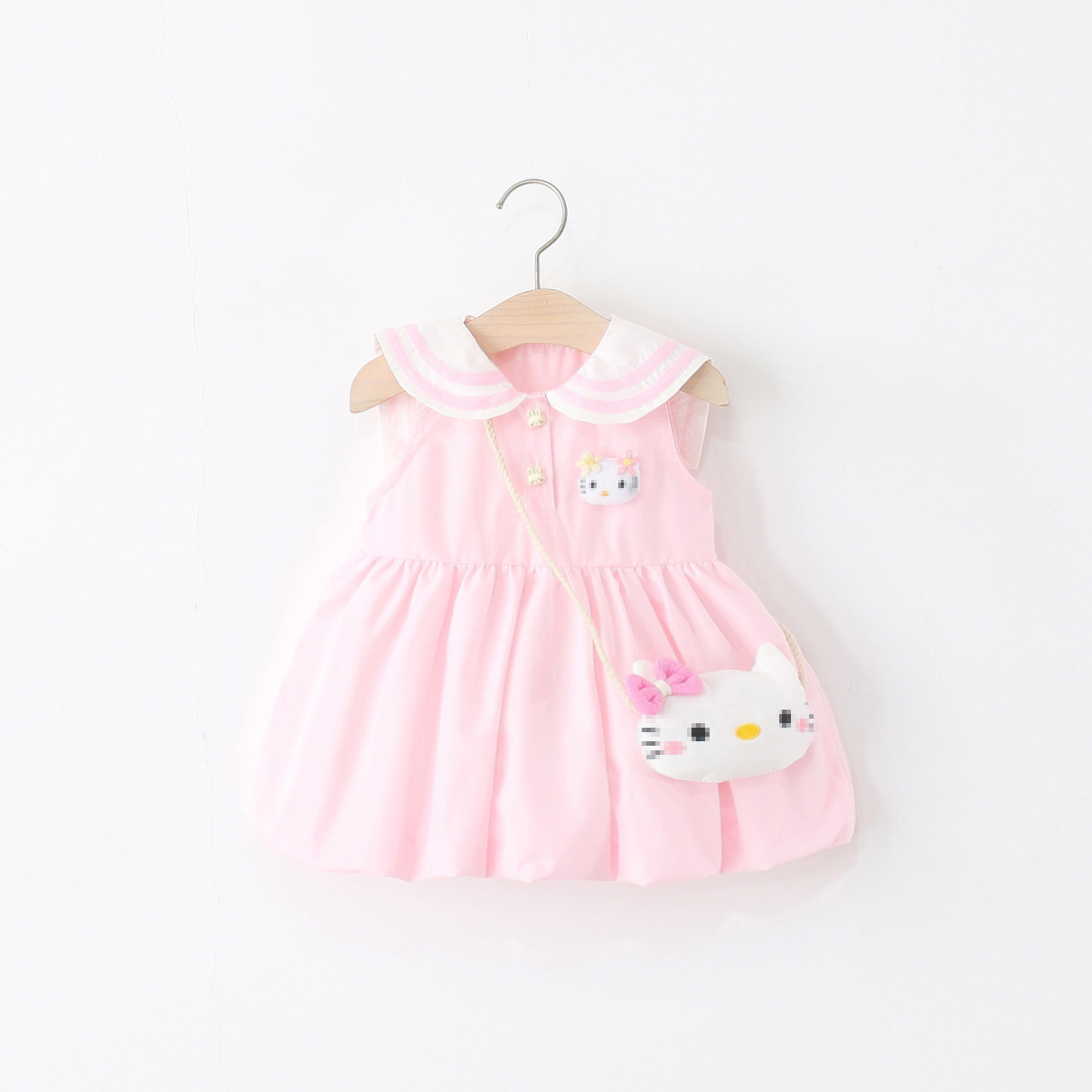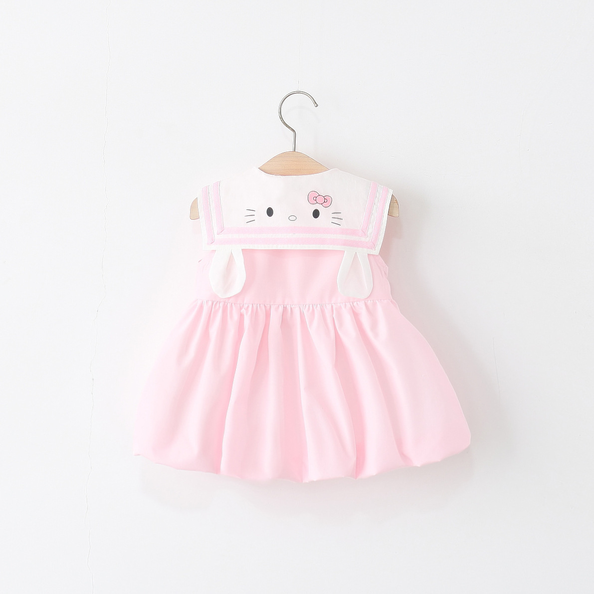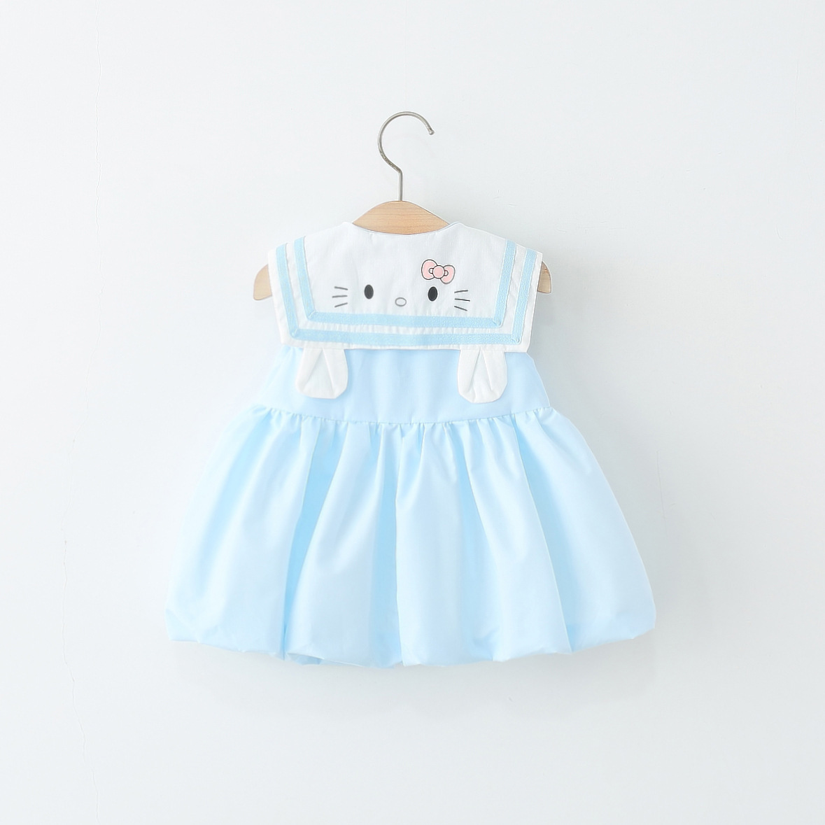 아동 의류 2025 새로운 여자 드레스 여름 아기 소녀 아기 만화 해군 칼라 꽃 공주 스커트