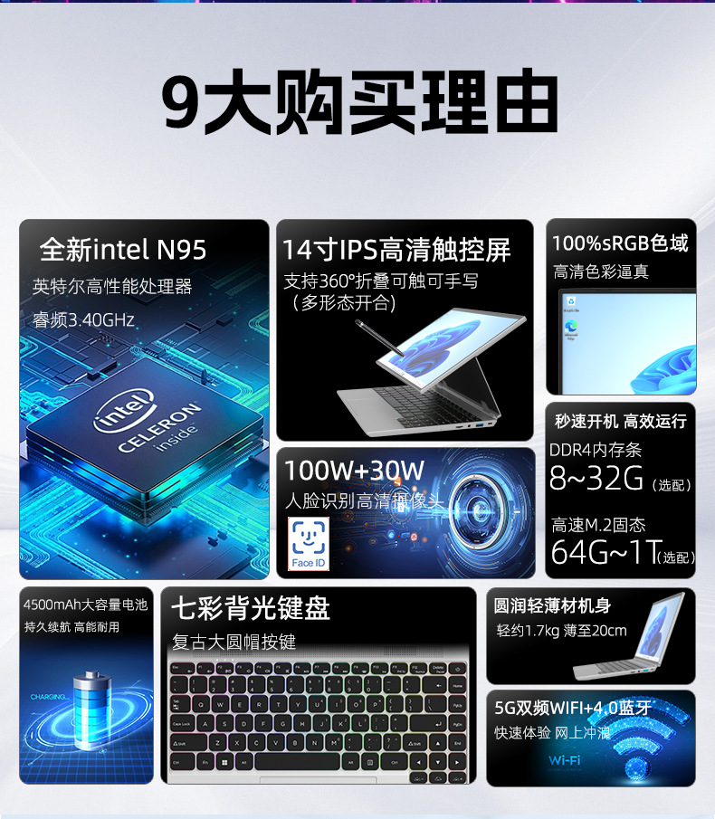 • 실버/N95 프로세서/업그레이드된 얼굴 인식