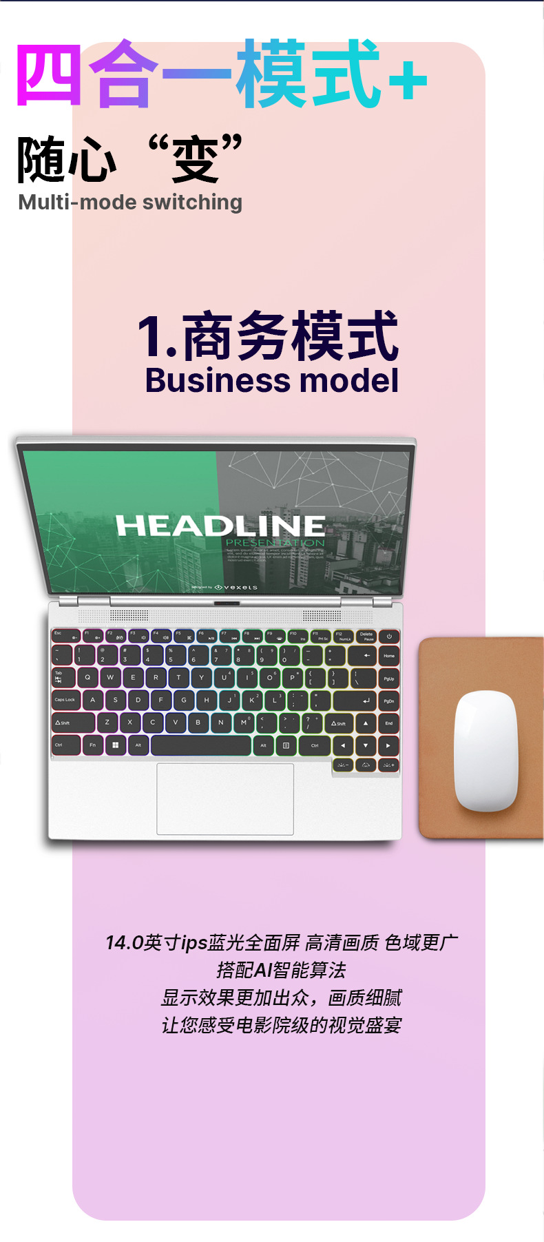 공장 직접 판매 14inch 터치 스크린 PC 태블릿 2-in-1 노트북 얇고 가벼운 휴대용 크로스 보더 도매