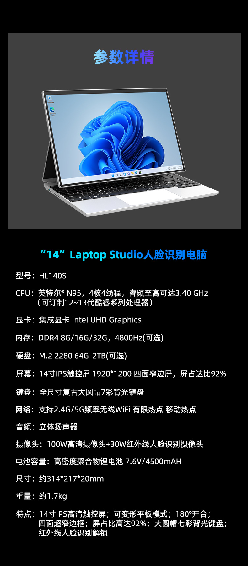 공장 직접 판매 14inch 터치 스크린 PC 태블릿 2-in-1 노트북 얇고 가벼운 휴대용 크로스 보더 도매스토어 가기