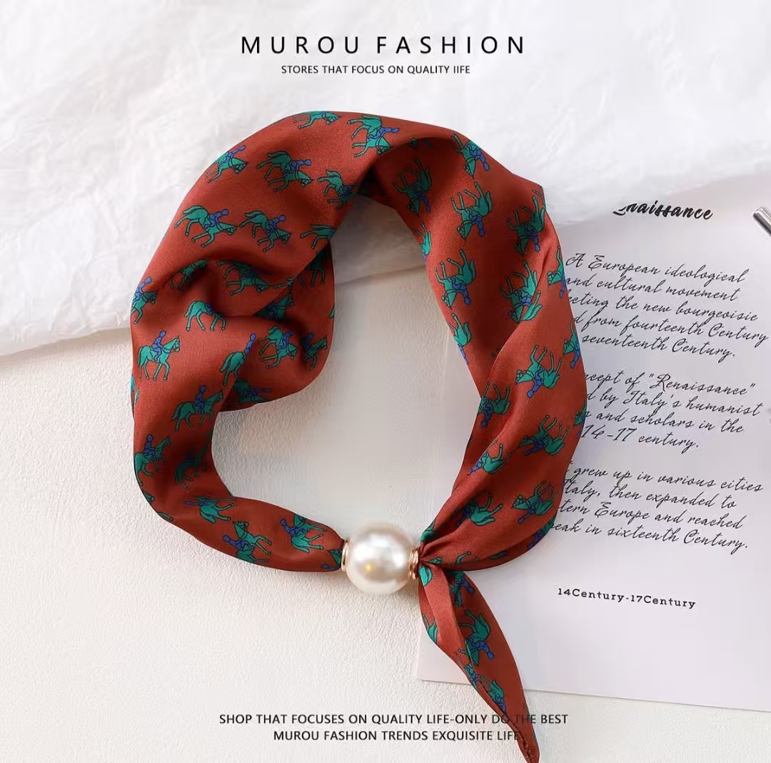 • [리틀테일] 오프화이트 포니헤드 마그네틱 버클 실크 스카프