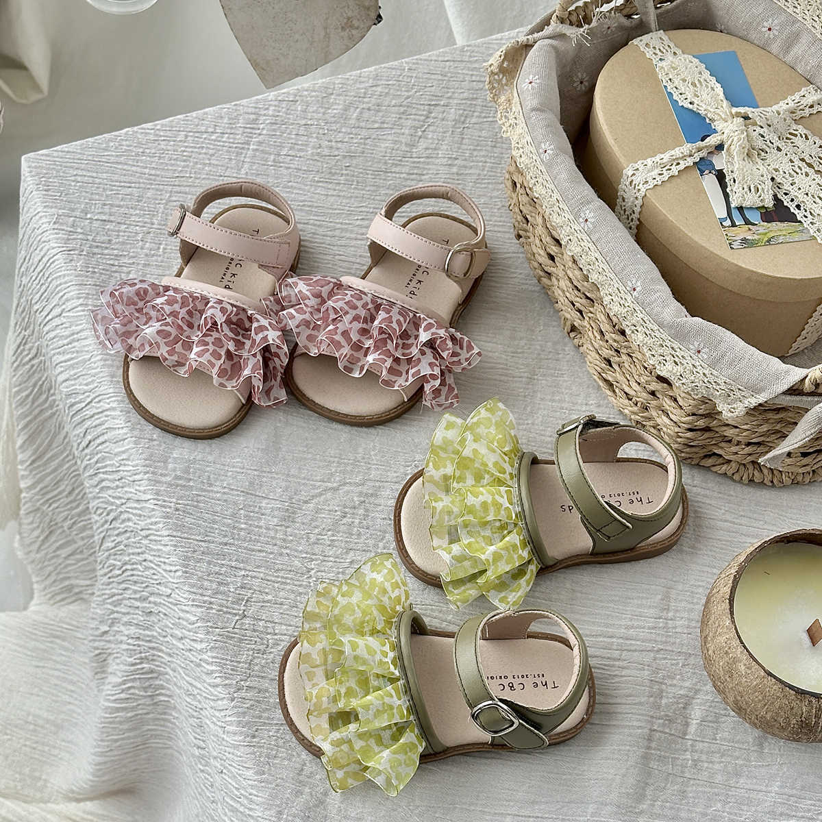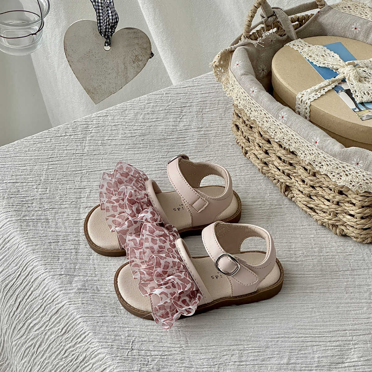XSHX "꽃무늬 물방울무늬" 한국 스타일 여아 공주 샌들 여름 오픈토 고급형 힐커버 고무 미끄럼 방지 소프트 솔