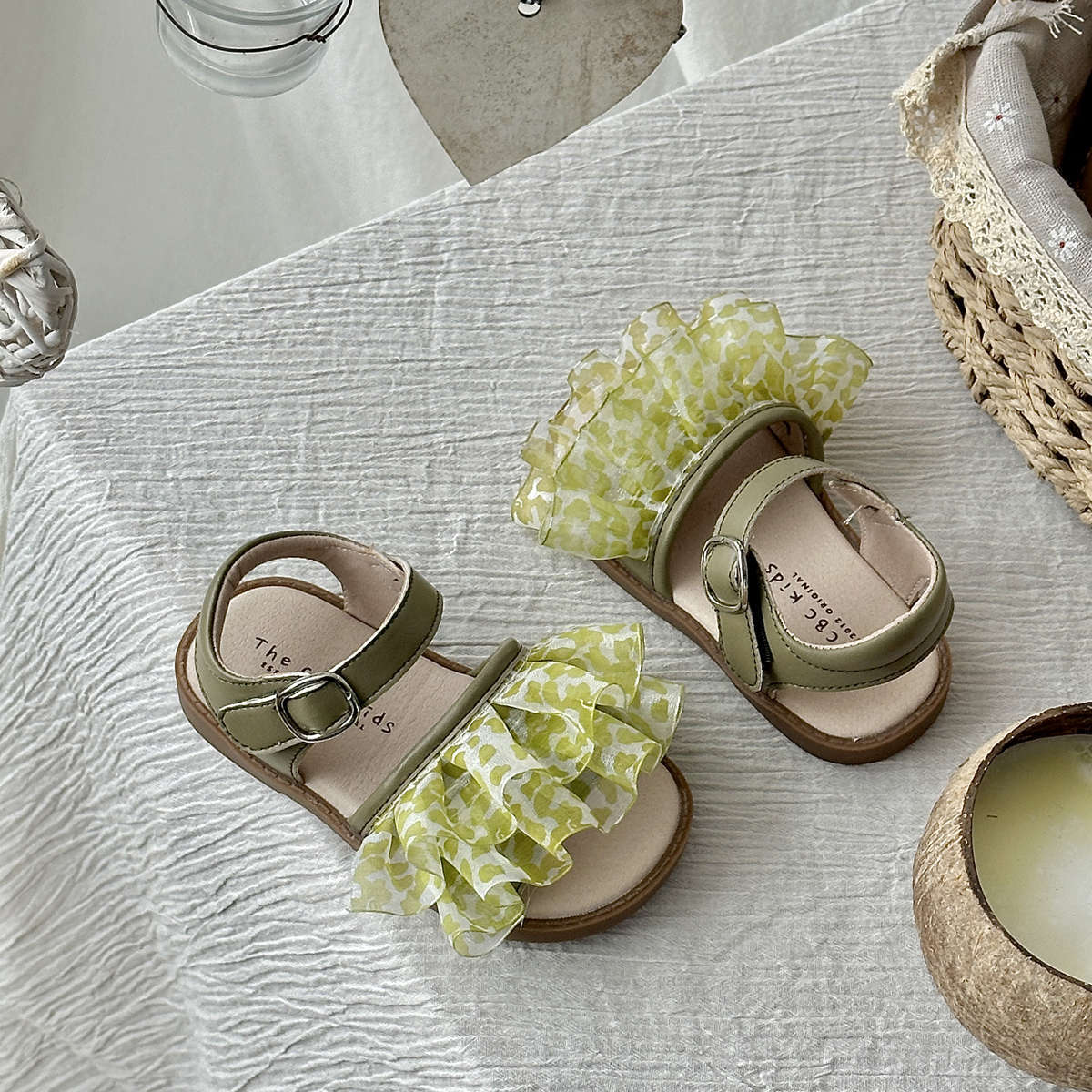 XSHX "꽃무늬 물방울무늬" 한국 스타일 여아 공주 샌들 여름 오픈토 고급형 힐커버 고무 미끄럼 방지 소프트 솔스토어 가기
