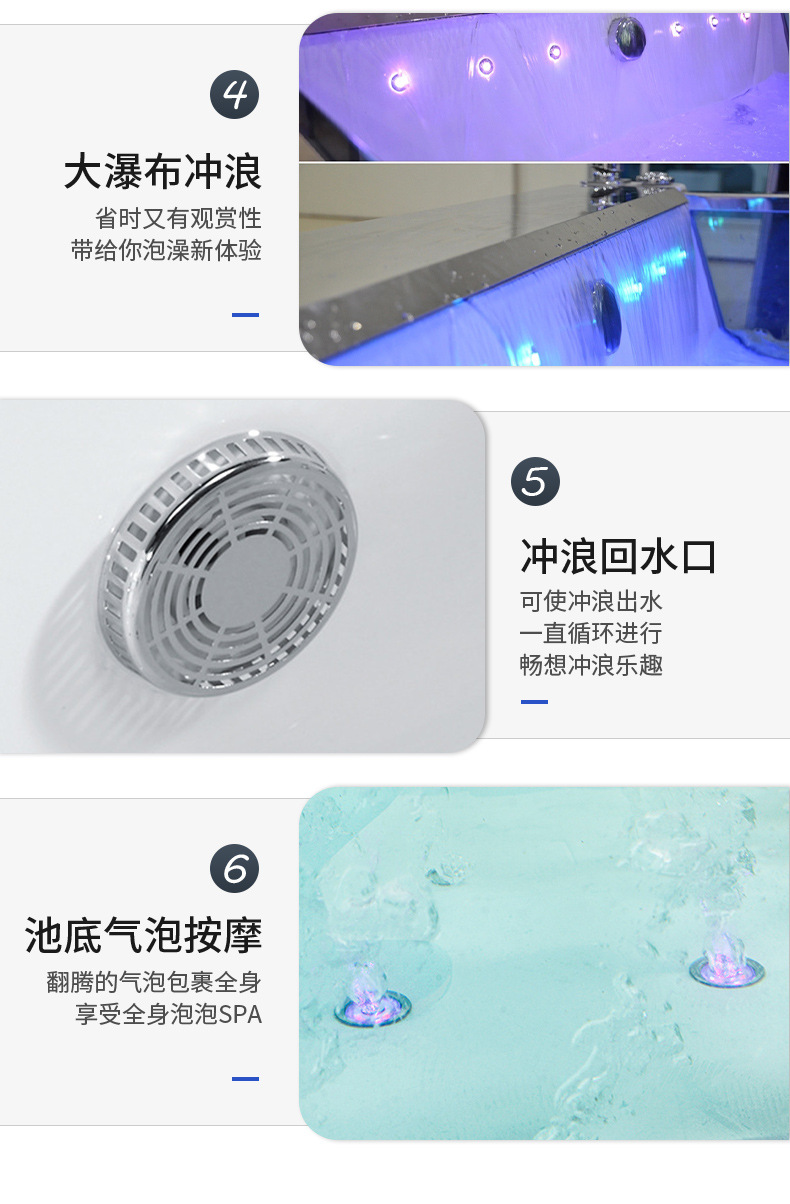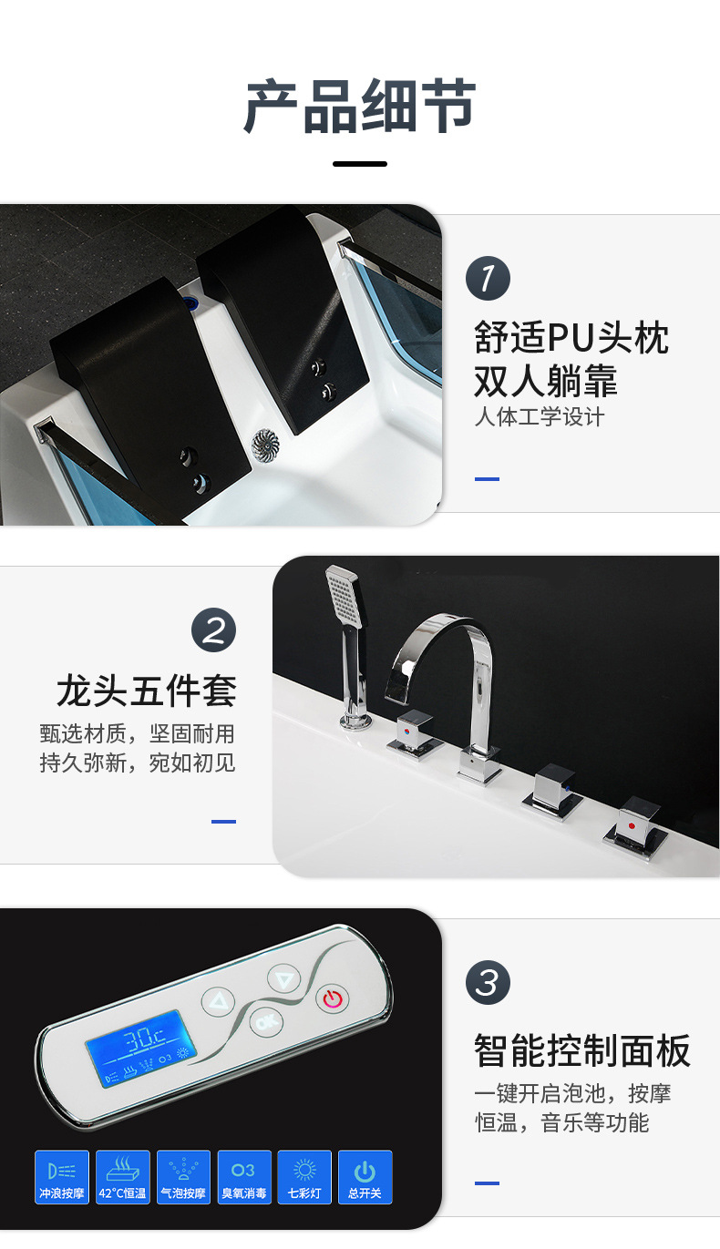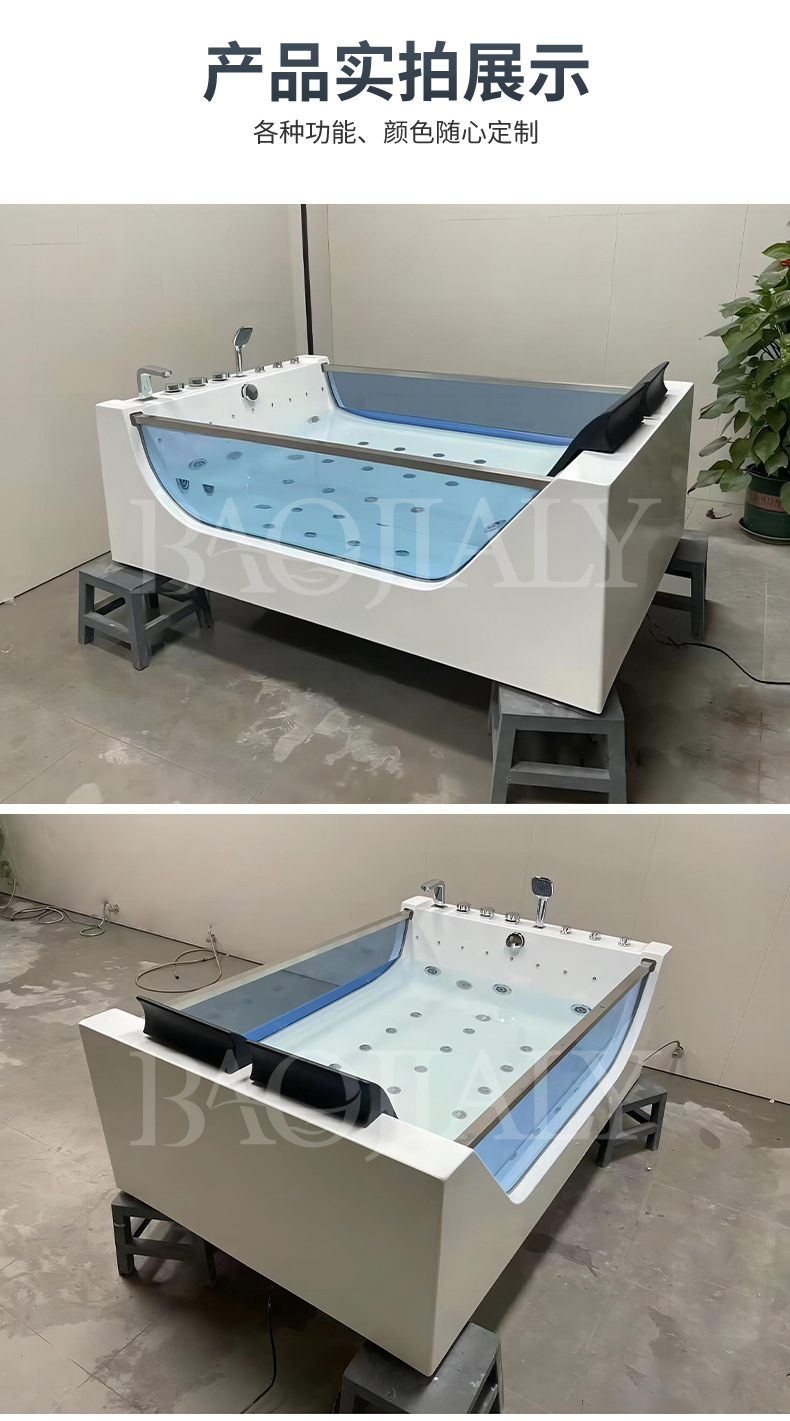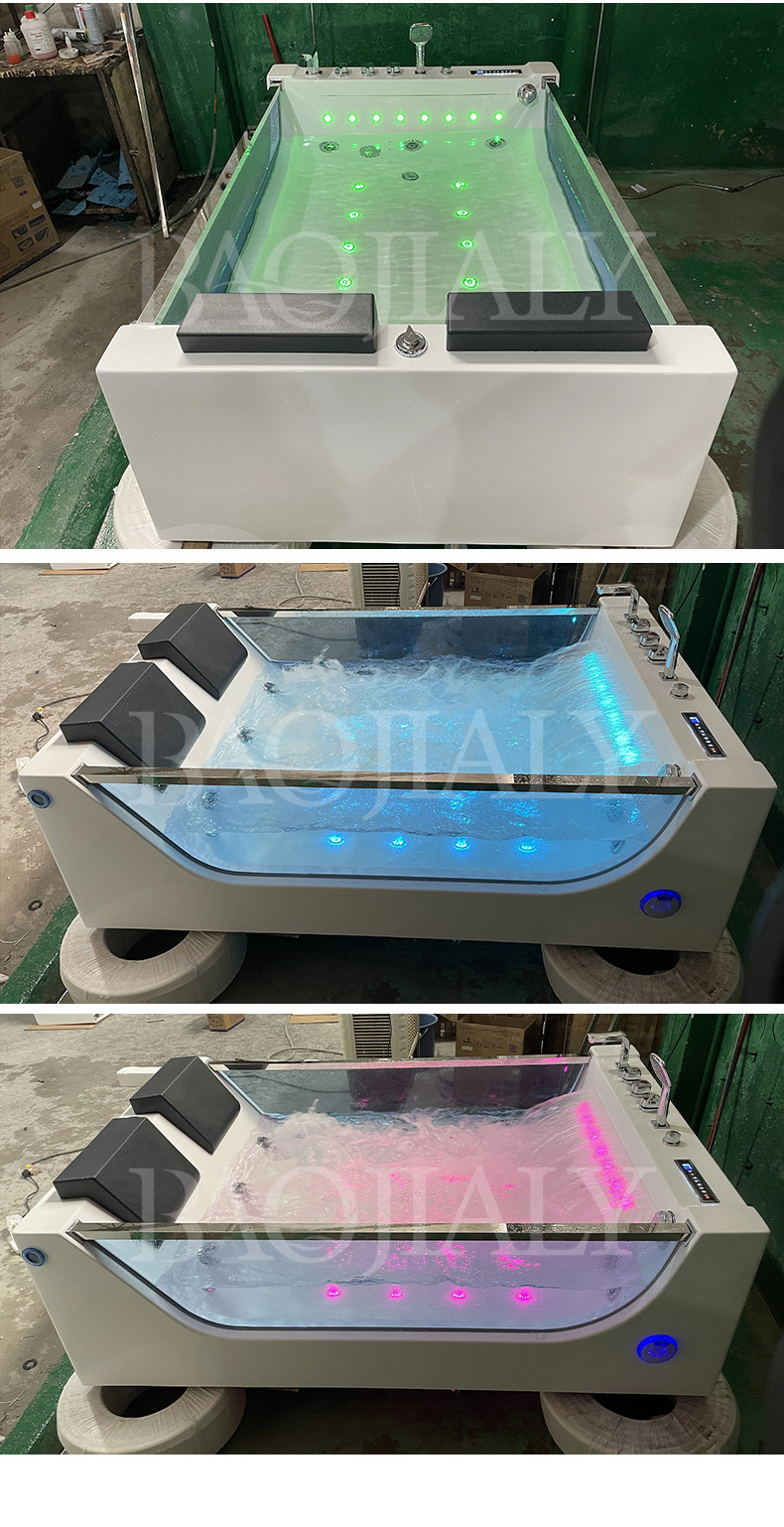 아크릴 독립형 마사지&서핑 기능 양면유리 더블 프렌치 쿠션 욕조, 해외 도매, 항온 가열스토어 가기