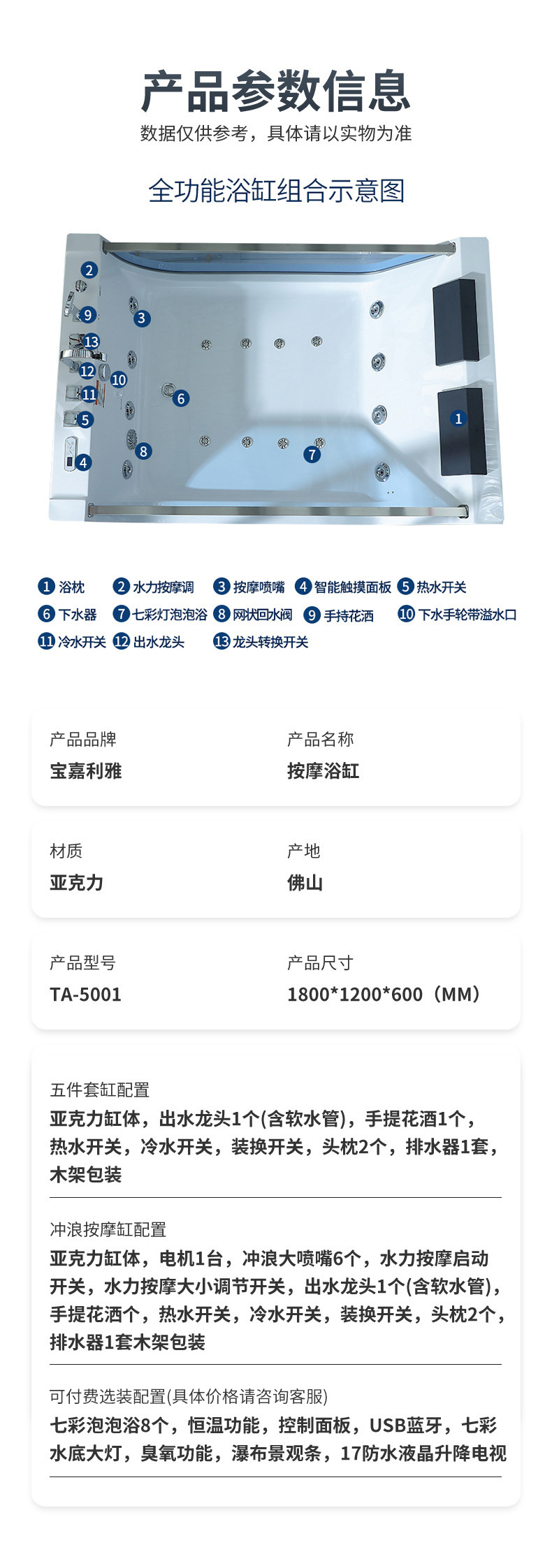 • 마사지 월풀 욕조 구성