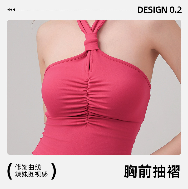 요가복 Qianying 조끼 올인원 컵 스포츠 브라(가슴 패드 포함) 아름다운 등 전문 러닝 스포츠 피트니스 탑