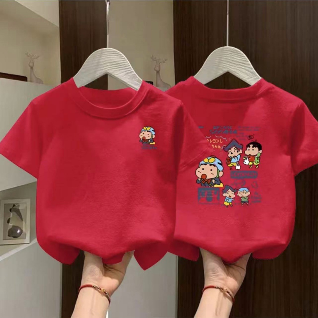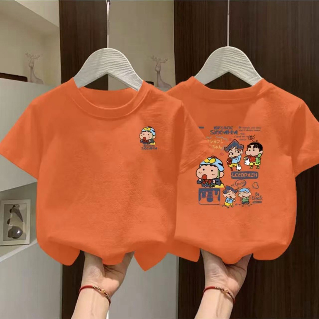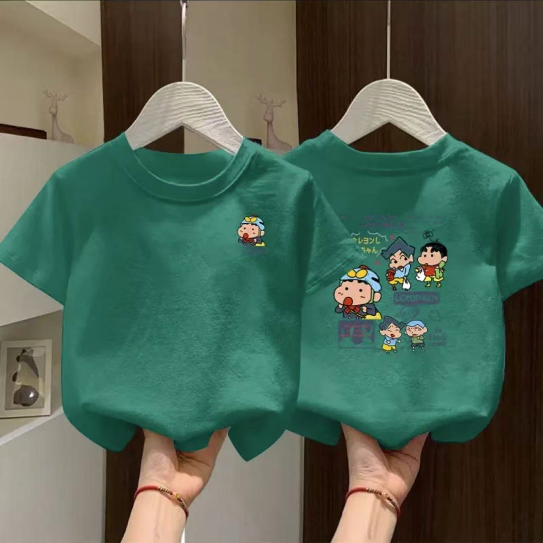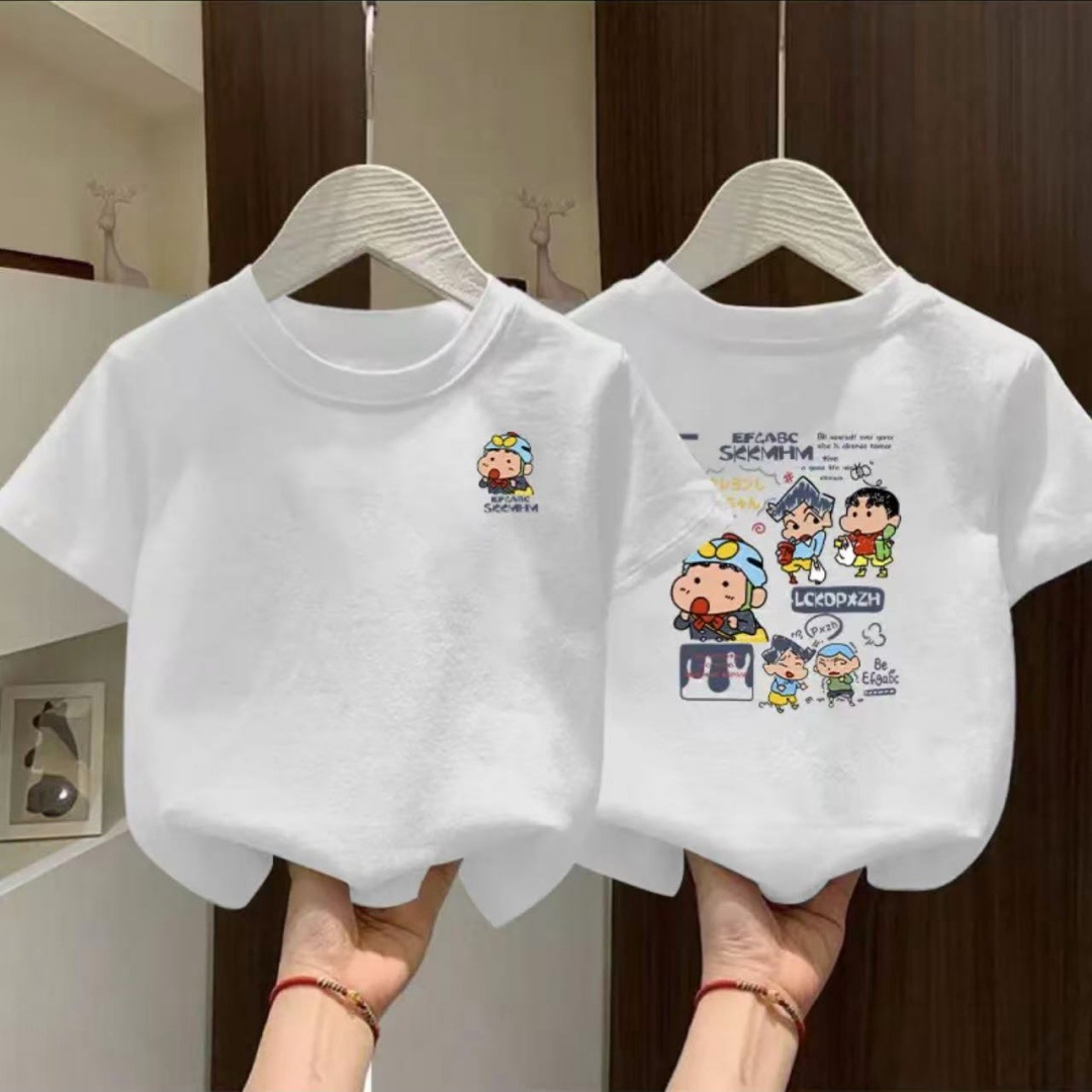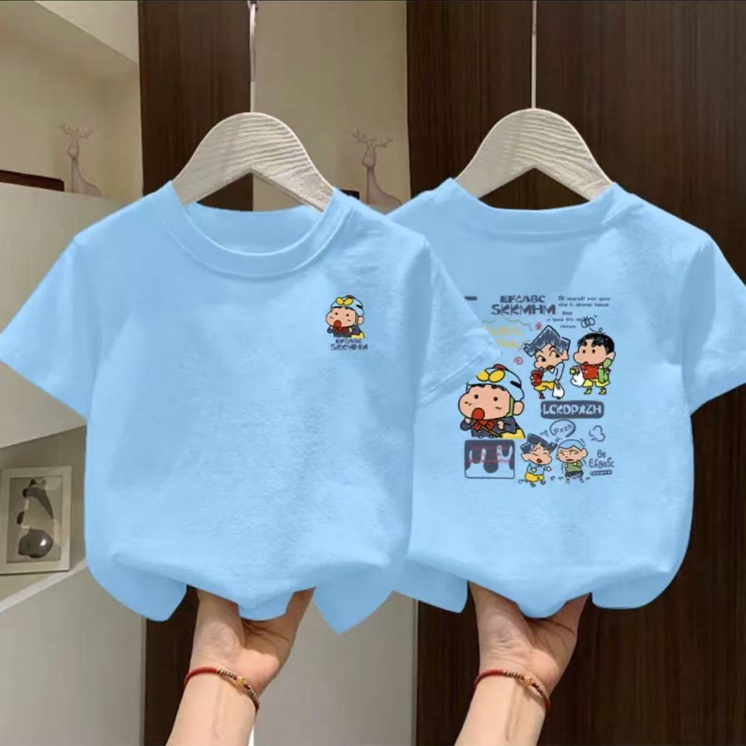 100% 면 소년 여름 반팔 티셔츠 2025 새로운 스타일 중대형 어린이 여름 소년 느슨한 스타일 반팔스토어 가기