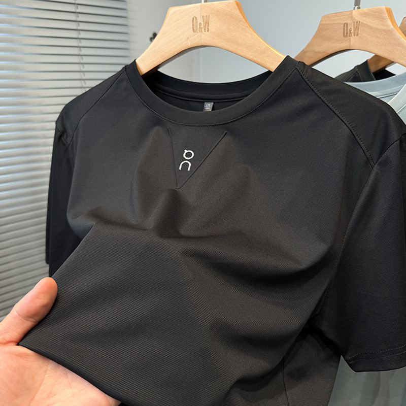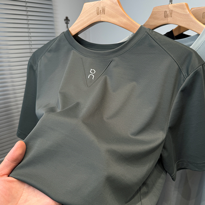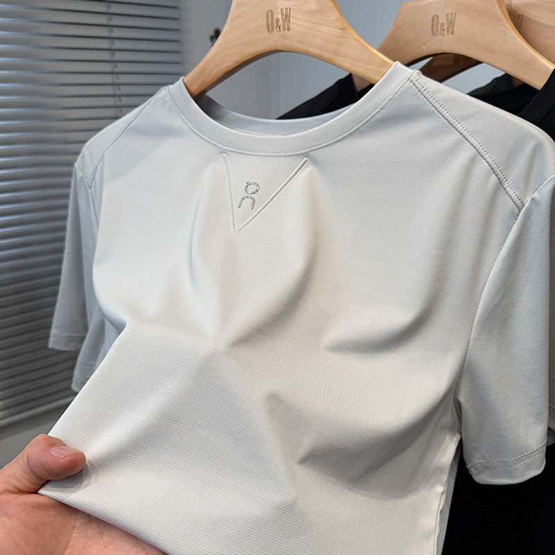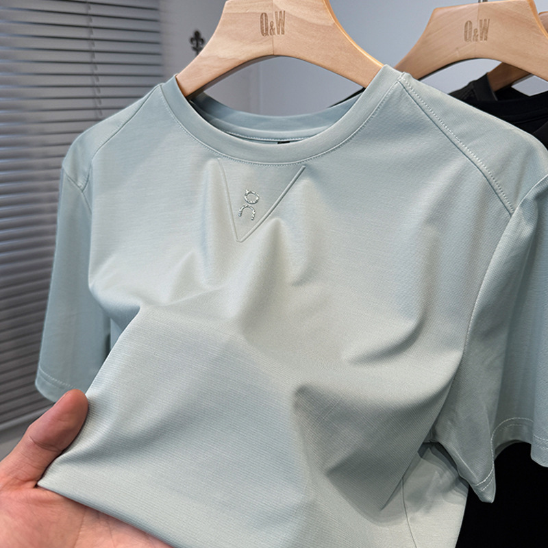 멀베리 실크 반팔 티셔츠 남성용 라운드 넥 여름 얇은 스포츠 및 레저 탑 젊은 및 중년 트렌드를 위한 아이스 실크 언더셔츠