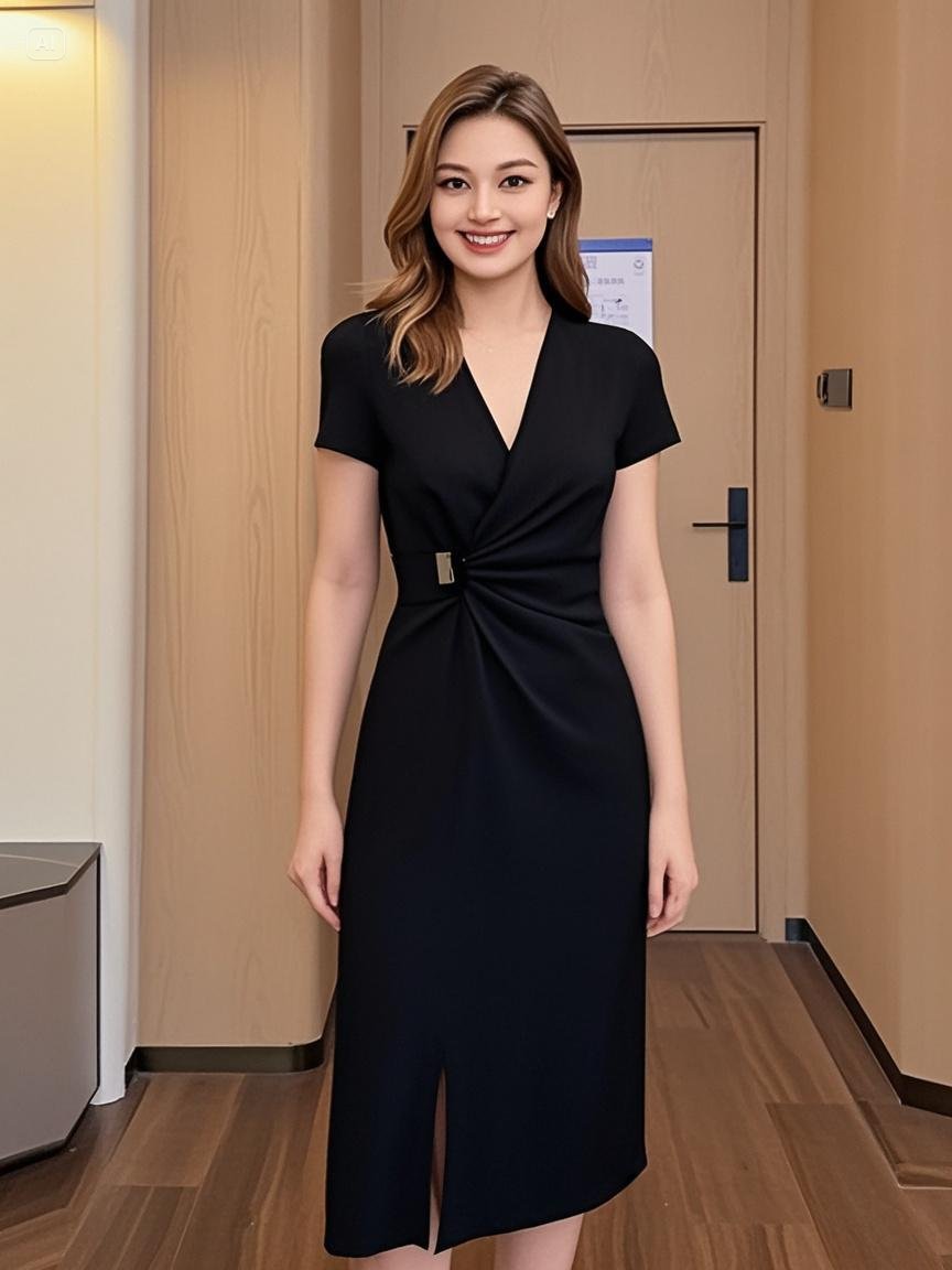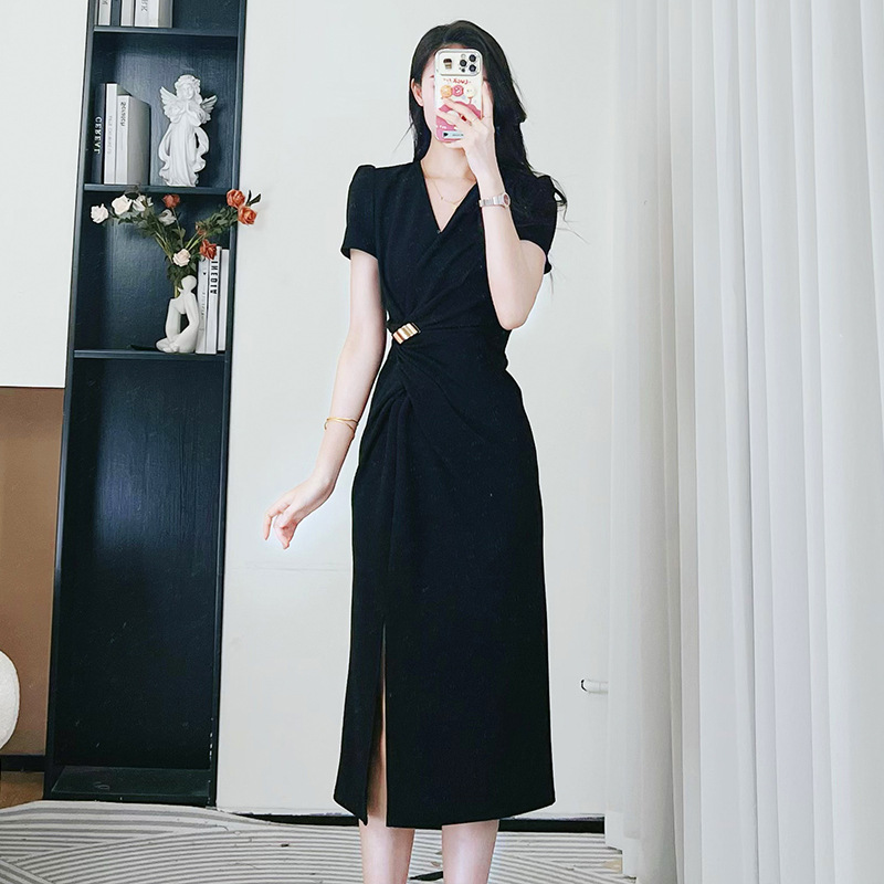 [재고 6685] 살짝 살찐 mm 여름 신상 디자인 슬림 브이넥 드레스 트위스트 슬릿