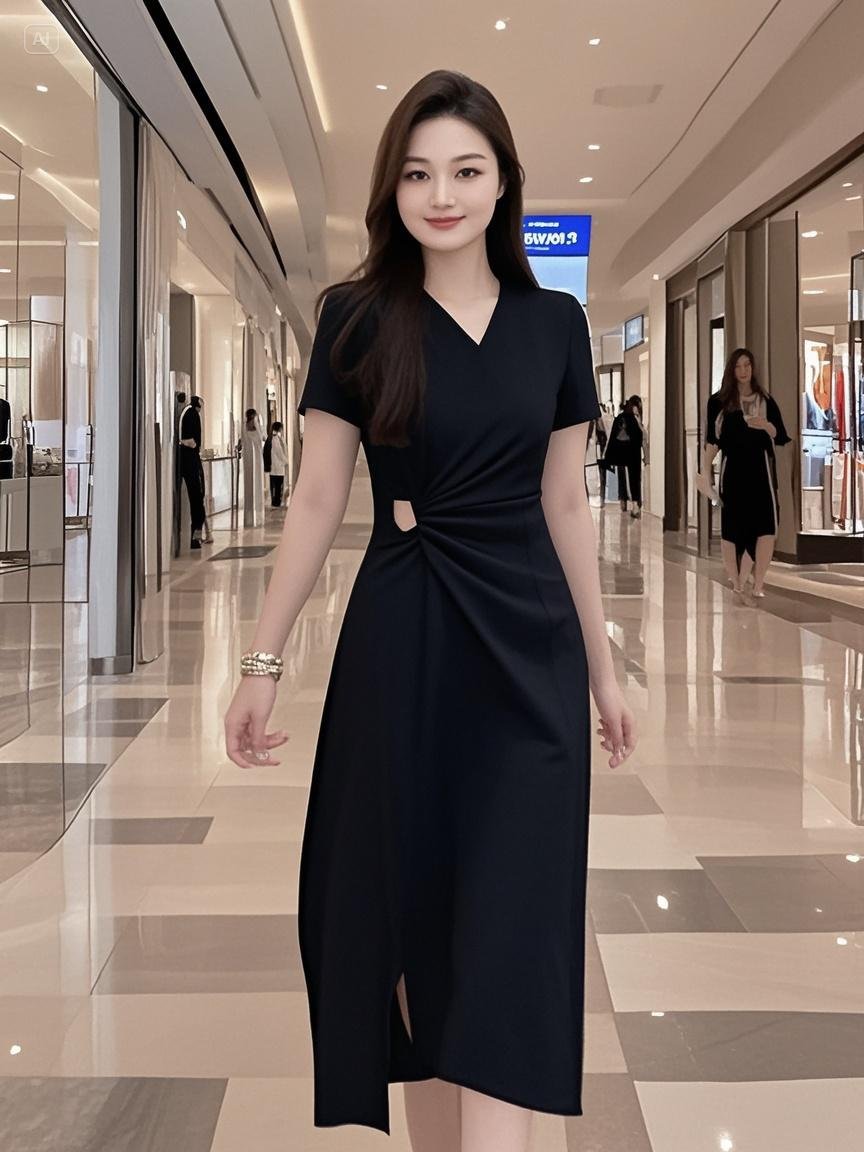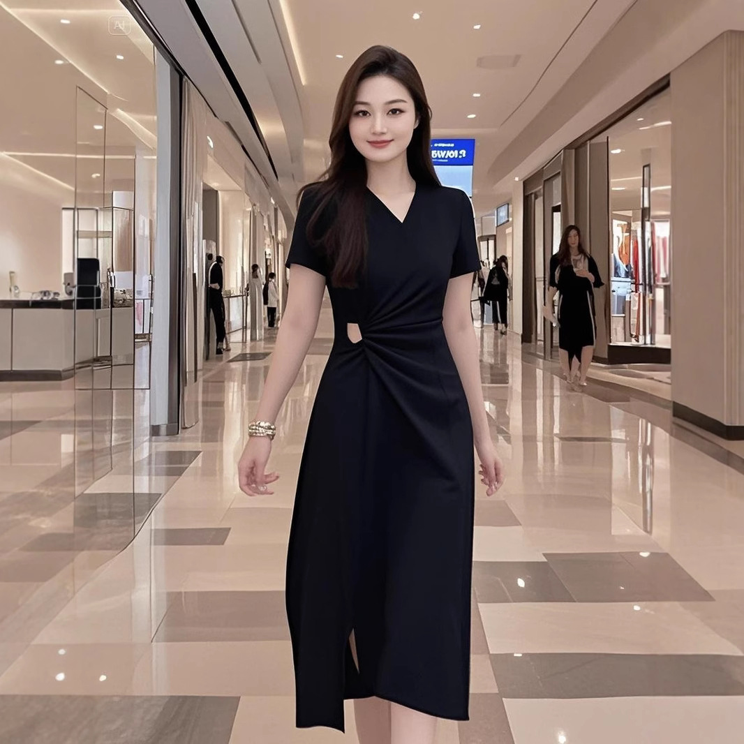 [재고 6685] 살짝 살찐 mm 여름 신상 디자인 슬림 브이넥 드레스 트위스트 슬릿스토어 가기