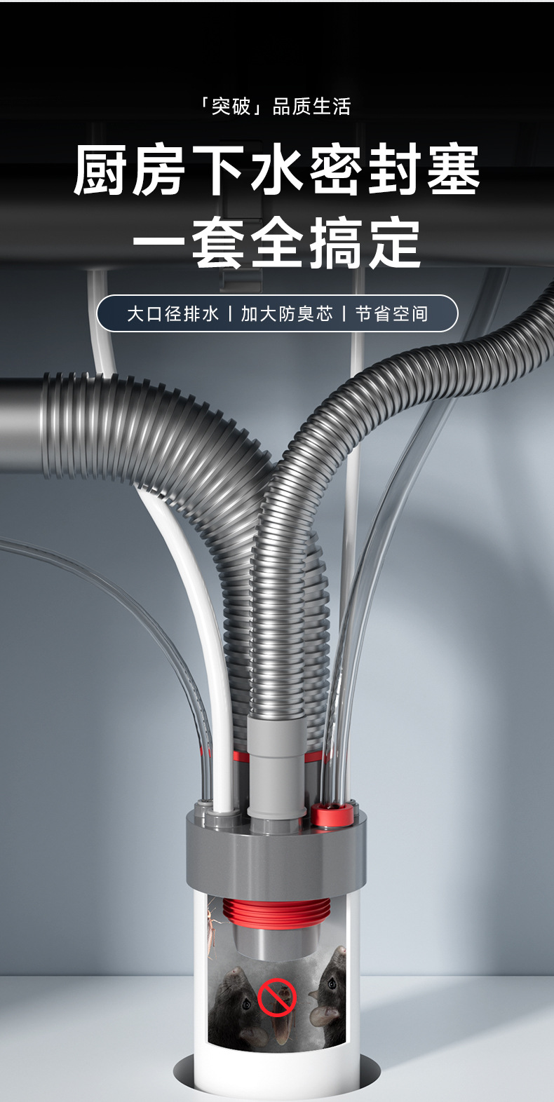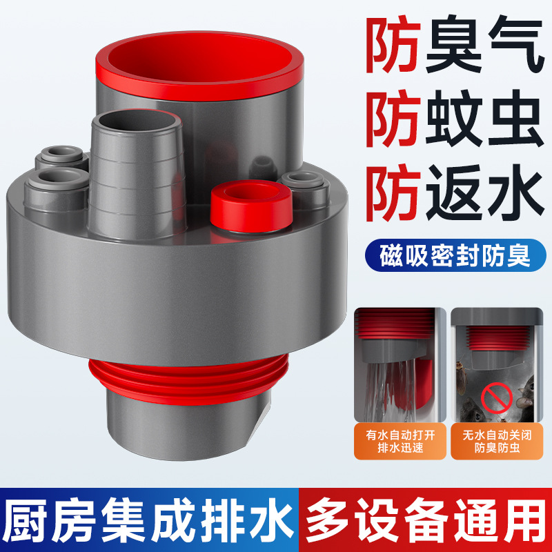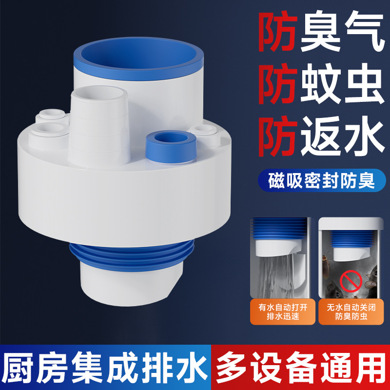 주방 하수구 6방향 커넥터 배수구 탈취제 다기능 식기세척기 정수기 일체형