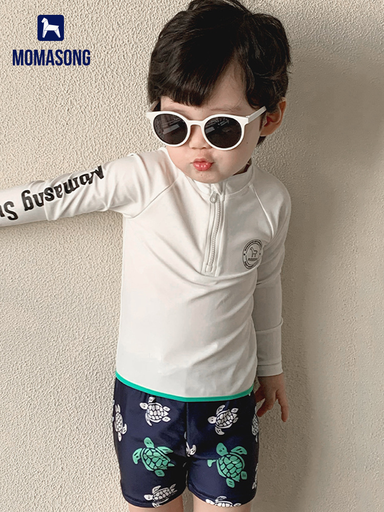 어린이 수영복 2025 여름 소년 스플릿 긴팔 자외선 차단 수영복 바지 세트 해변 휴가 속건 수영복스토어 가기