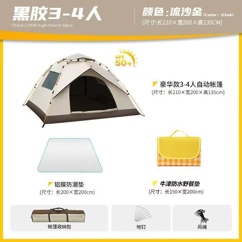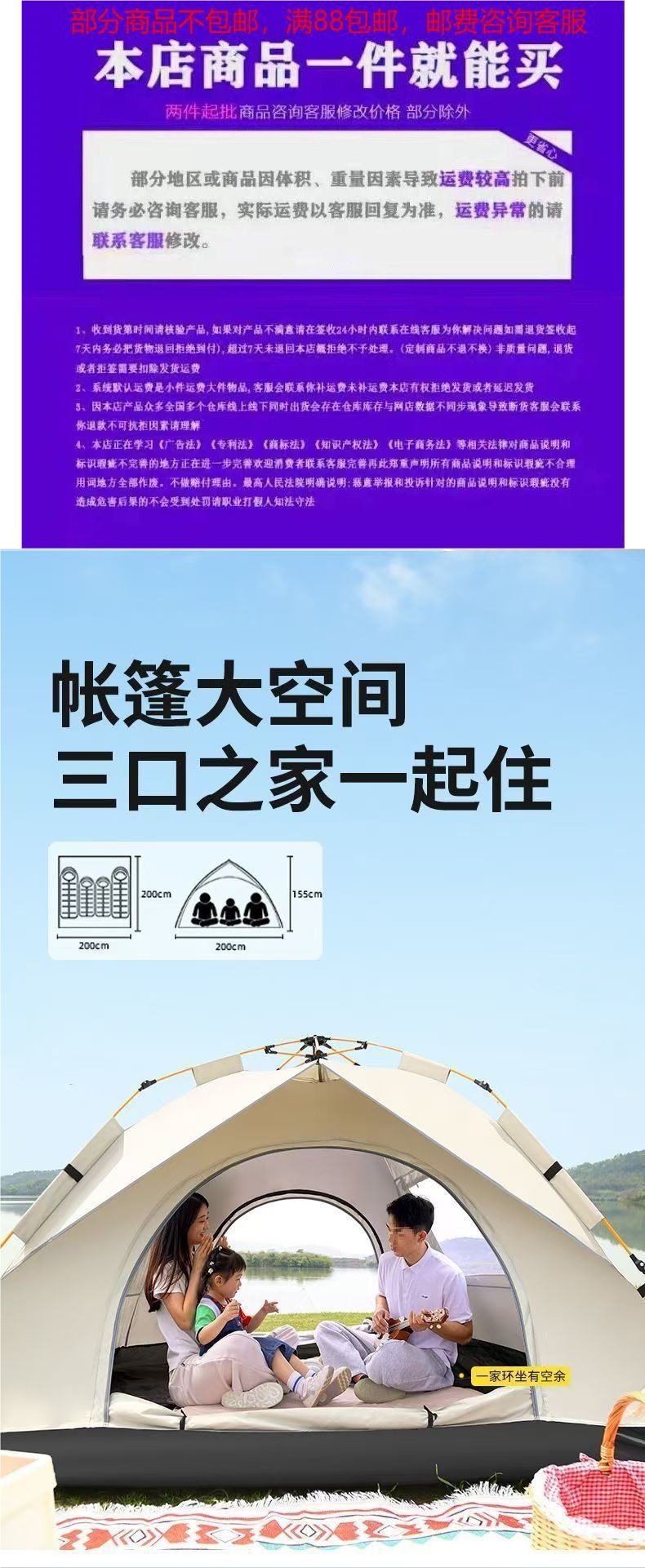 텐트 야외 접이식 휴대용 야외 캠핑 장비 캠핑 밤새도록 두꺼워진 완전 자동 원클릭 개폐 전체 세트스토어 가기
