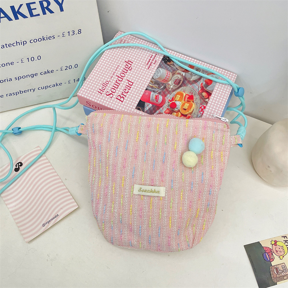 55312 새로운 휴대용 대용량 크로스 바디 휴대폰 가방 귀여운 작은 공 조절 가능한 보관 가방 경량