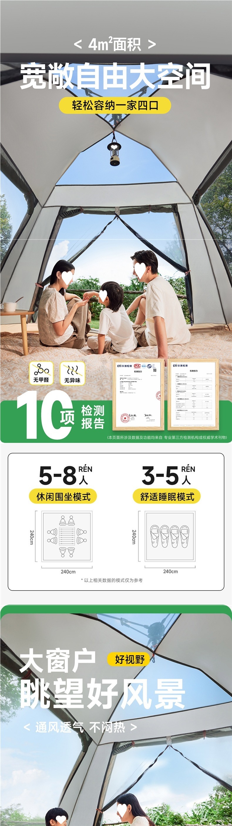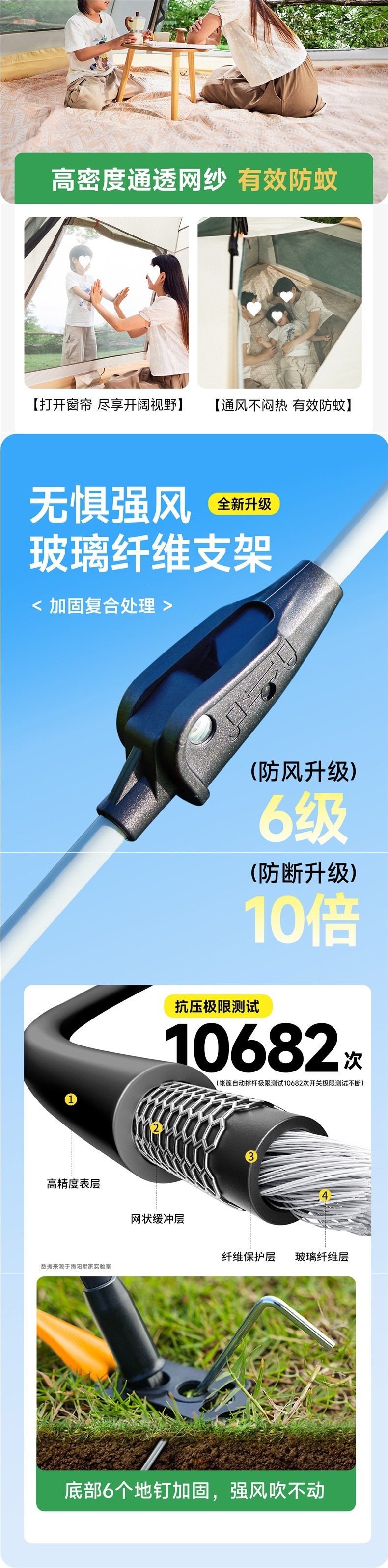 • 특대형 사이즈 [문 2개, 창문 2개, 자외선 차단 기능 강화] + 하룻밤 캠핑