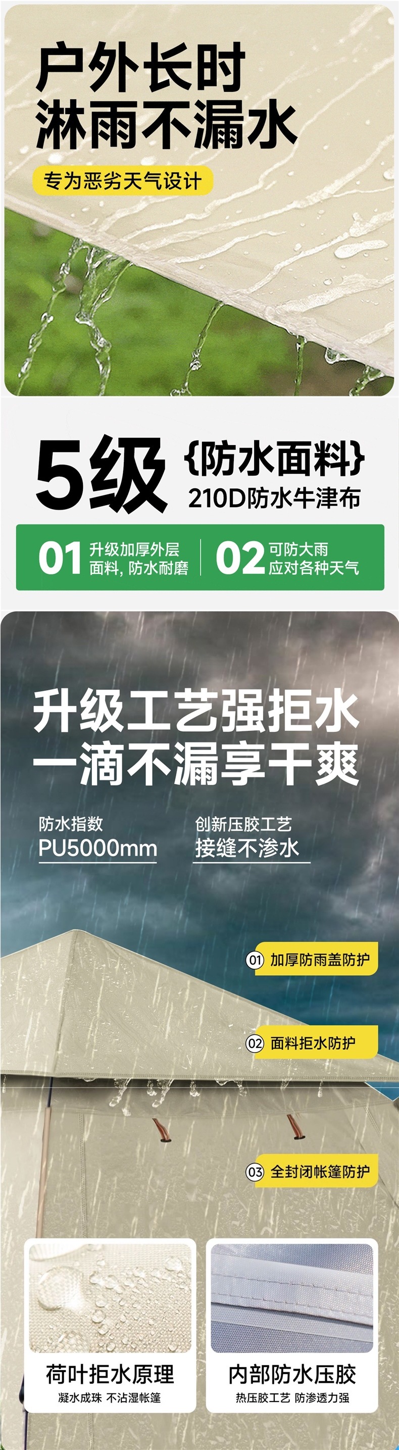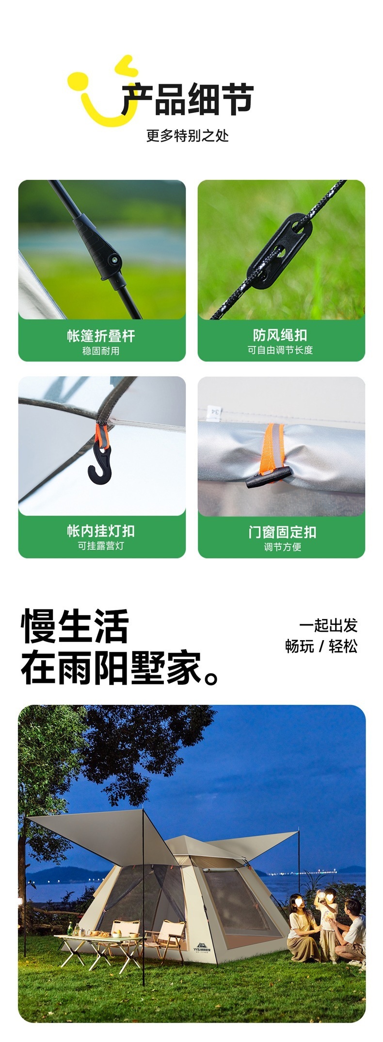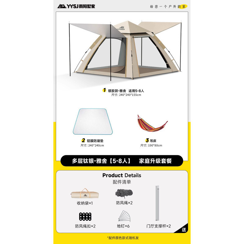 야외 캠핑용 텐트, 야간 비 방지, 야외용 두꺼운 캠핑 장비, 자동 접이식, 휴대용, 원클릭 개폐