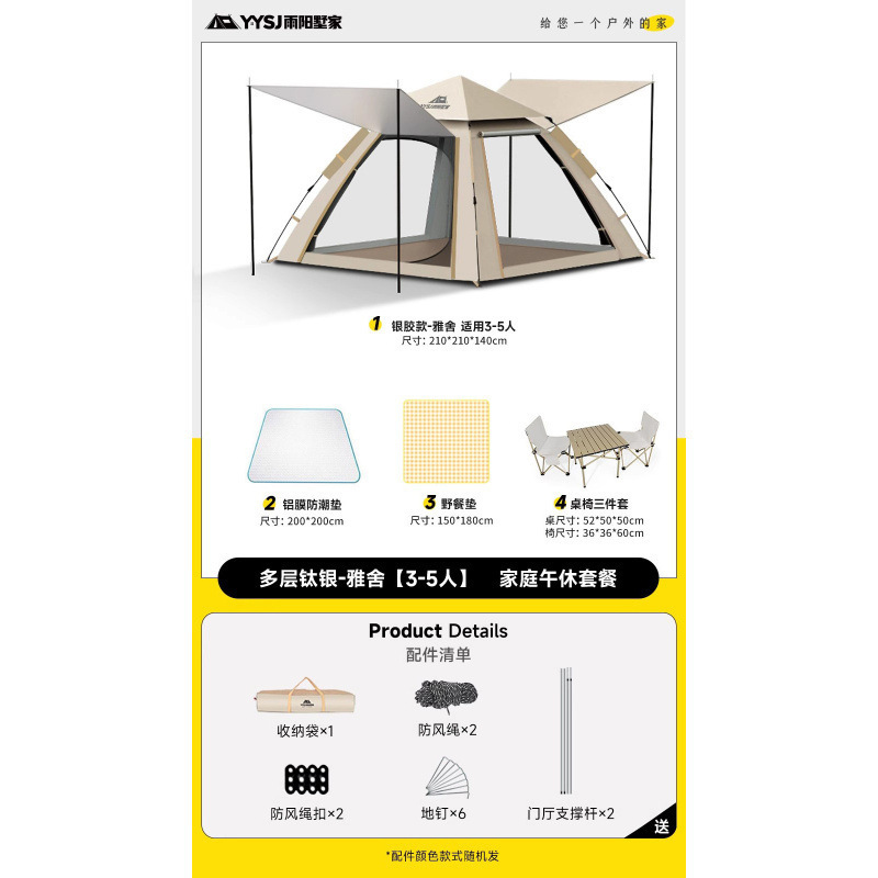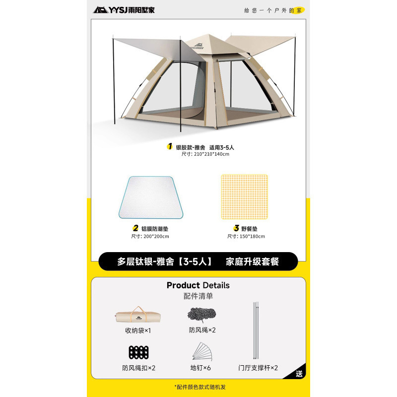 • 특대형 사이즈 [문 2개, 창문 2개, 두꺼운 자외선 차단] + 방습 매트 + 피크닉 매트 + 더블 테이블과 의자