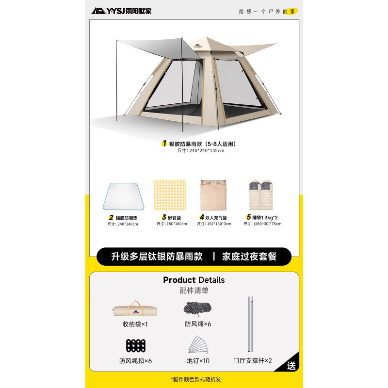 • XL [업그레이드된 폭우 방지 - 누수 시 전액 환불] - 하룻밤 캠핑 세트