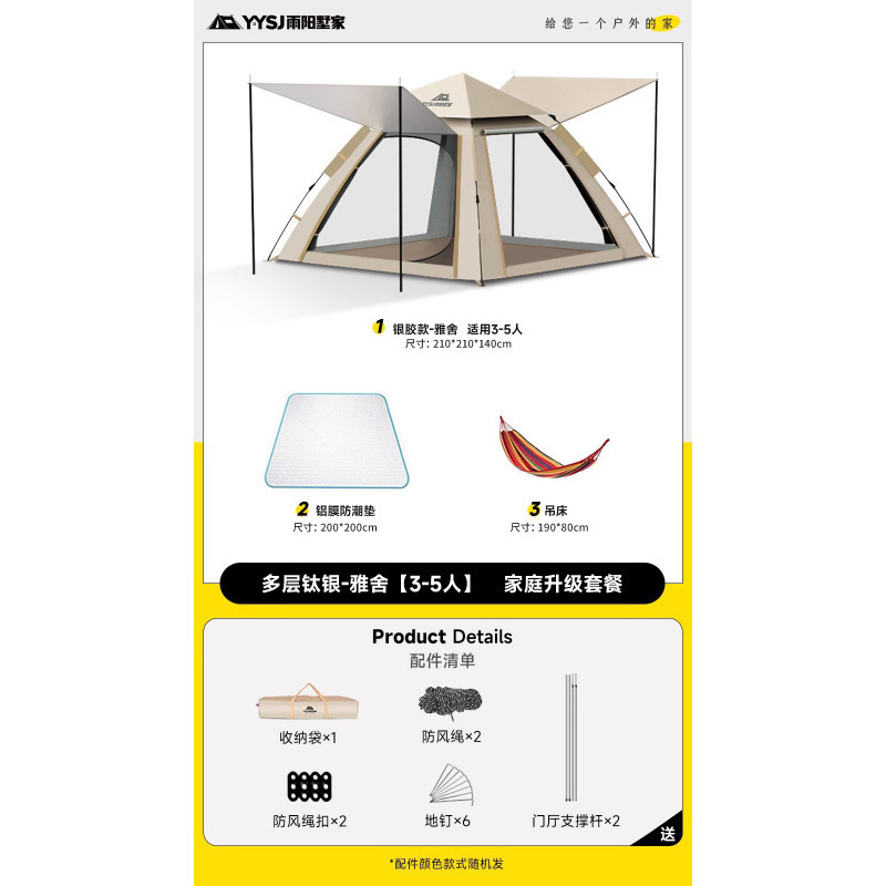 • [문 2개, 창문 2개, 자외선 차단 기능 강화] + 방습 매트 + 피크닉 매트 + 해먹