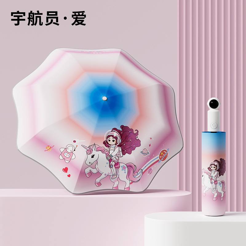 어린이 초등학교 우산 안전 안티 리바운드 완전 자동 비 또는 빛 우산 만화 둥근 모서리 태양 보호 우산스토어 가기
