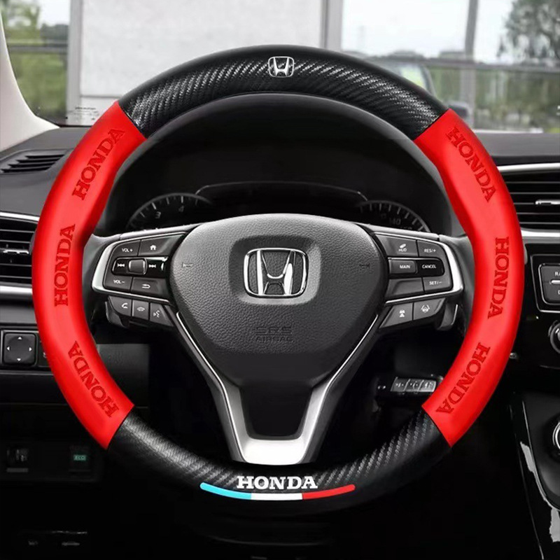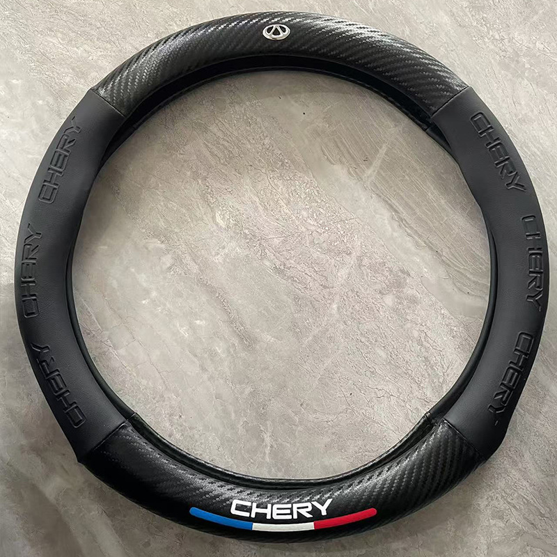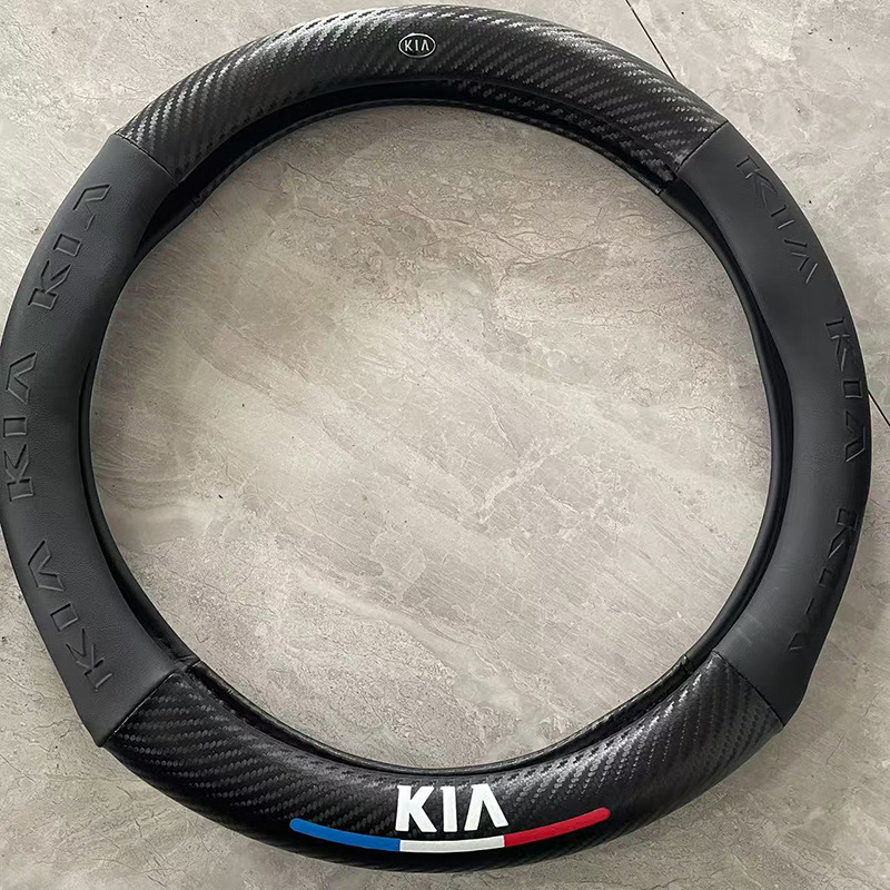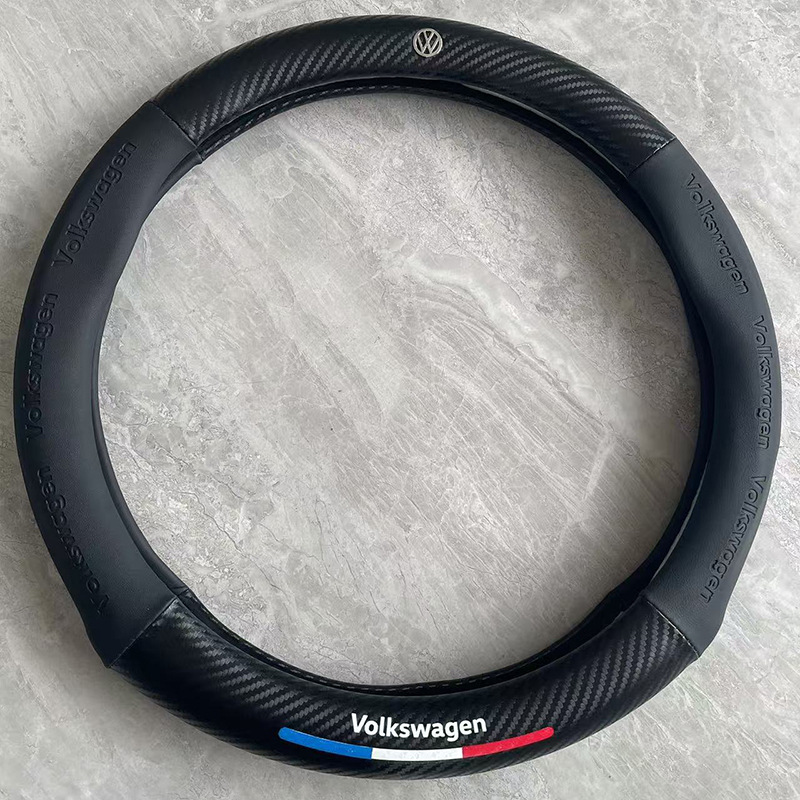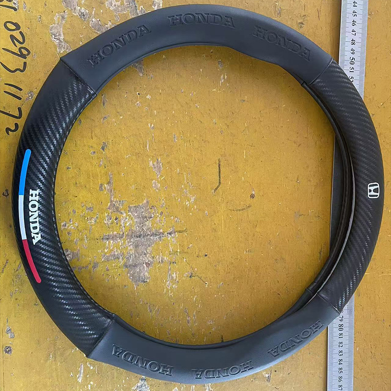 국경 간 탄소 섬유 스티어링 휠 커버 Panapi 접합 스티어링 휠 커버 인쇄 로고 자동차 스티어링 휠 커버 도매스토어 가기