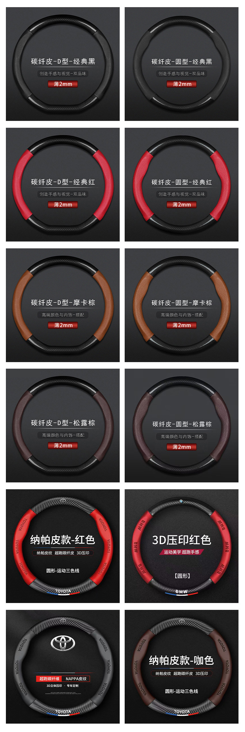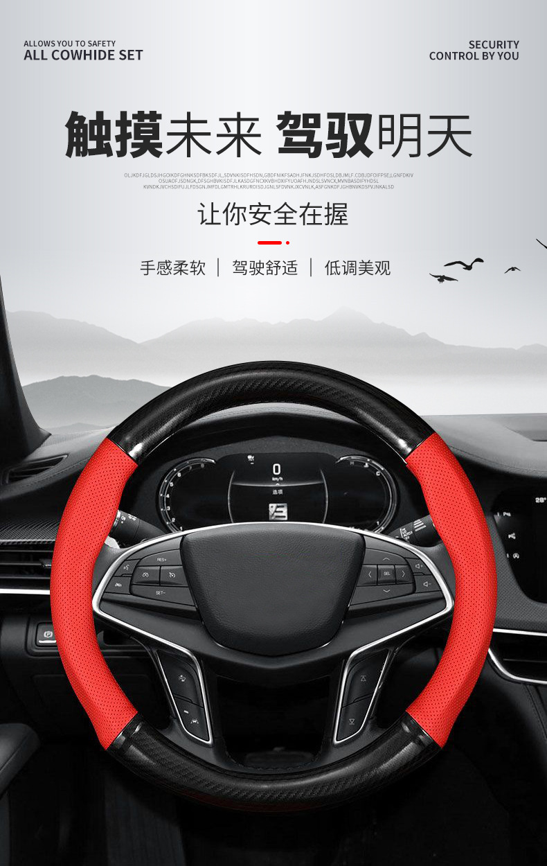 국경 간 탄소 섬유 스티어링 휠 커버 Panapi 접합 스티어링 휠 커버 인쇄 로고 자동차 스티어링 휠 커버 도매