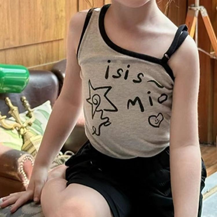 한국 스타일 아동복 여아 조끼 여름 스타일 아동용 서스펜더 여아 패션 프린트 탑 트렌디 의류 Z046