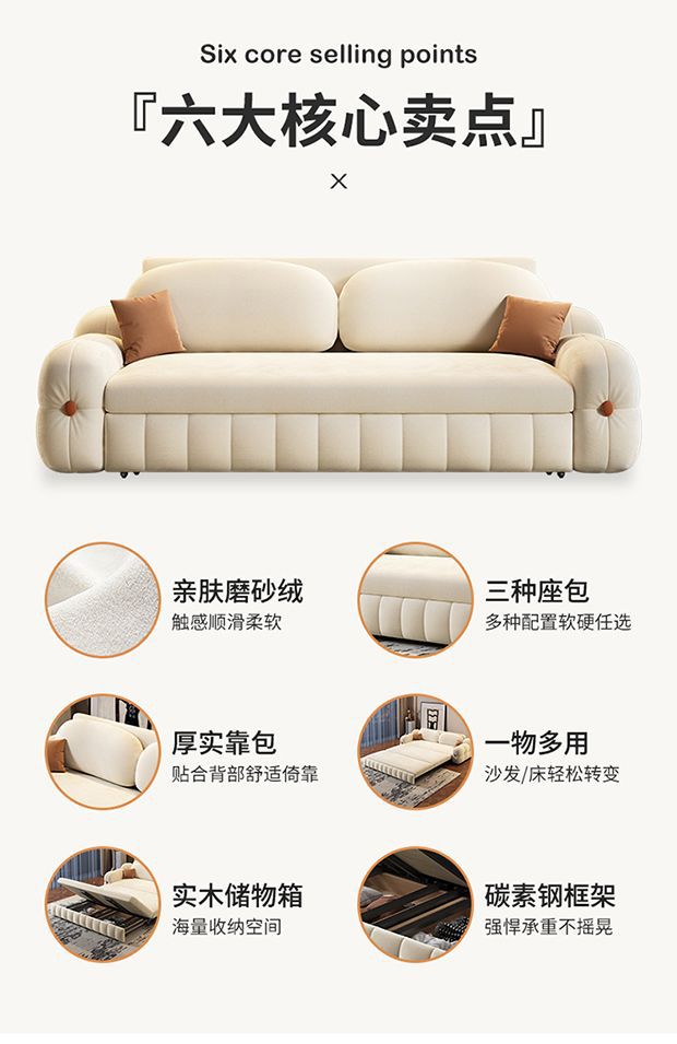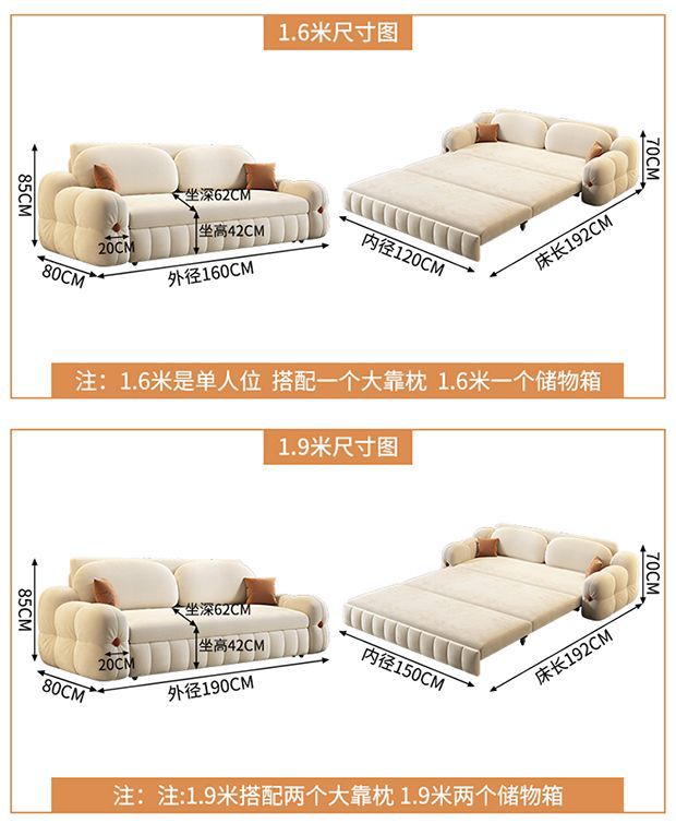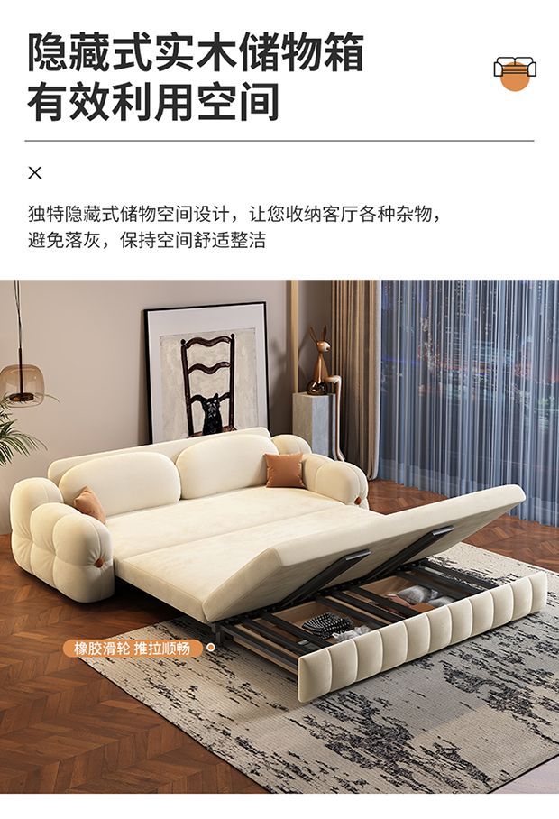 Que'anju 벨벳 소파 베드 이중 목적 올인원 다기능 풀아웃 접이식 수납 소형 아파트 발코니 새 모델