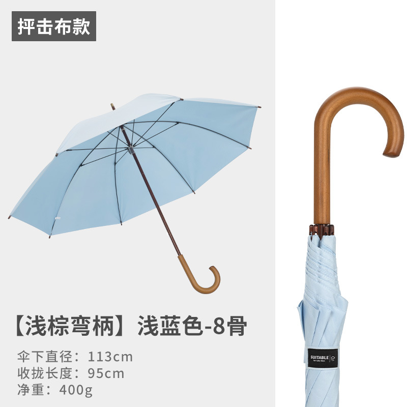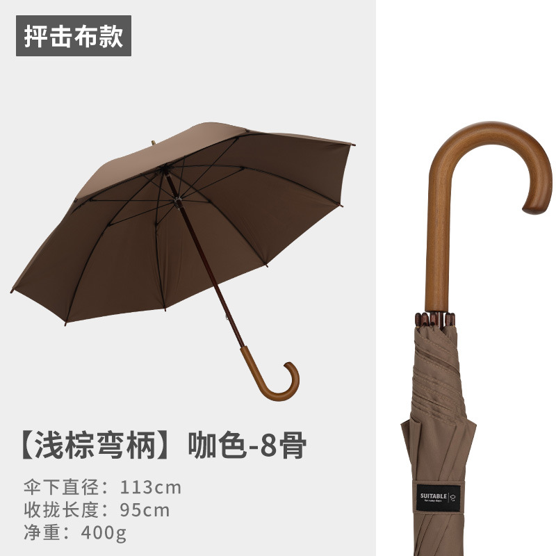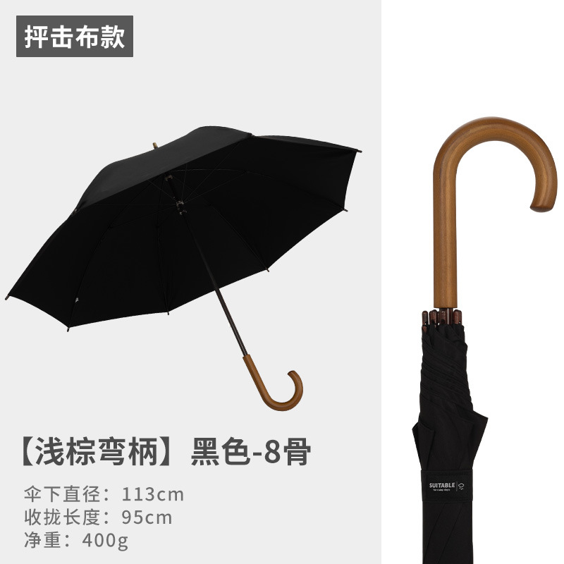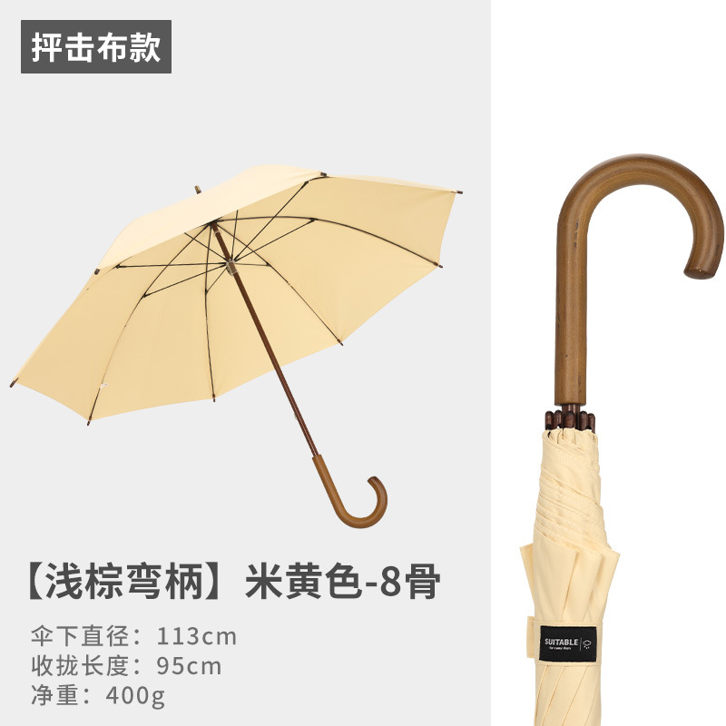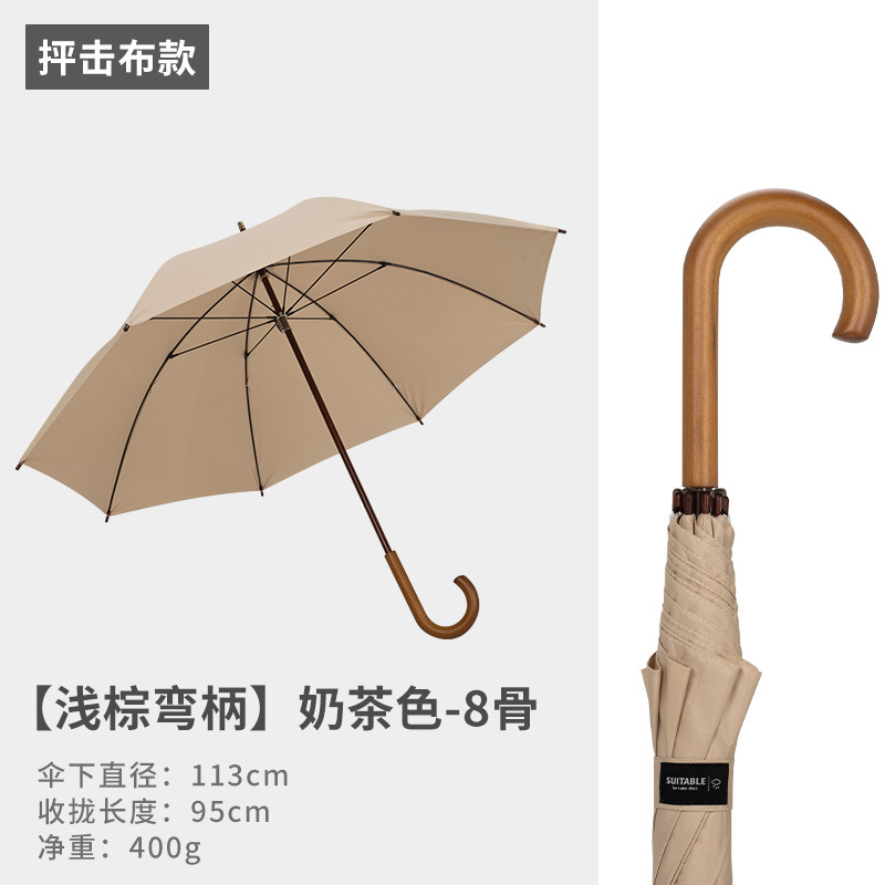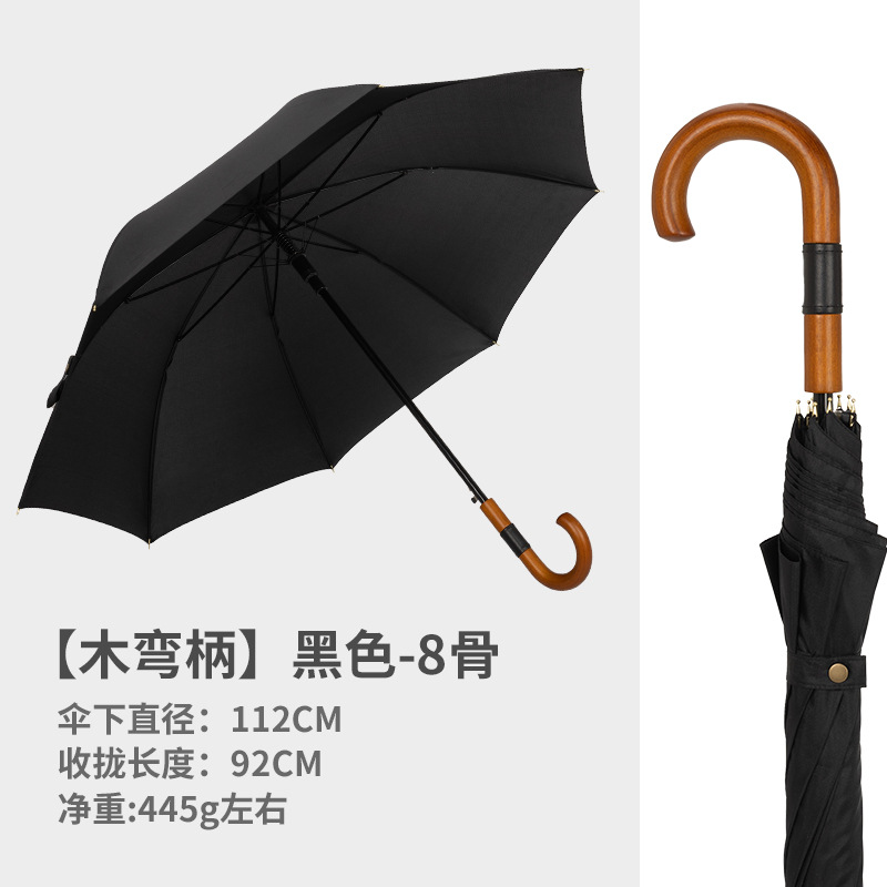 16본 긴 손잡이 직선 우산, 강화 및 강화, 강한 바람 저항성 단단한 나무 곡선 손잡이 가정용 더블 대형 우산 도매
