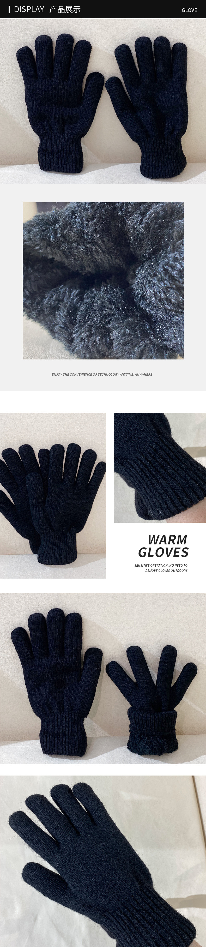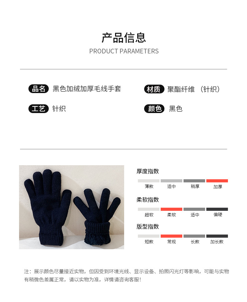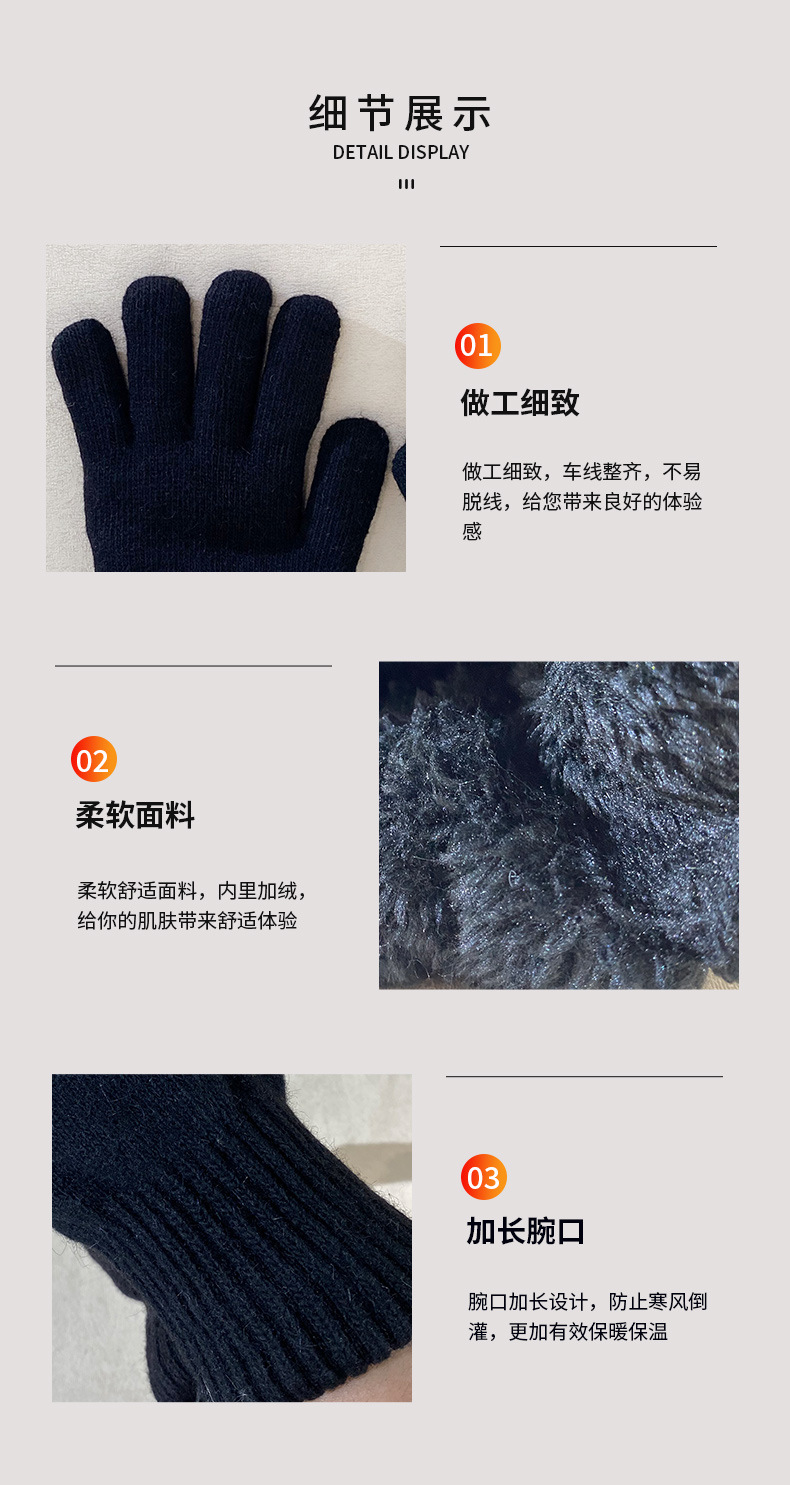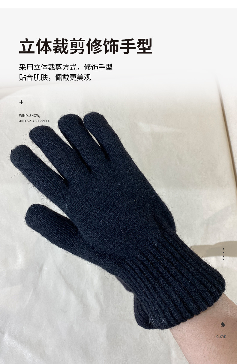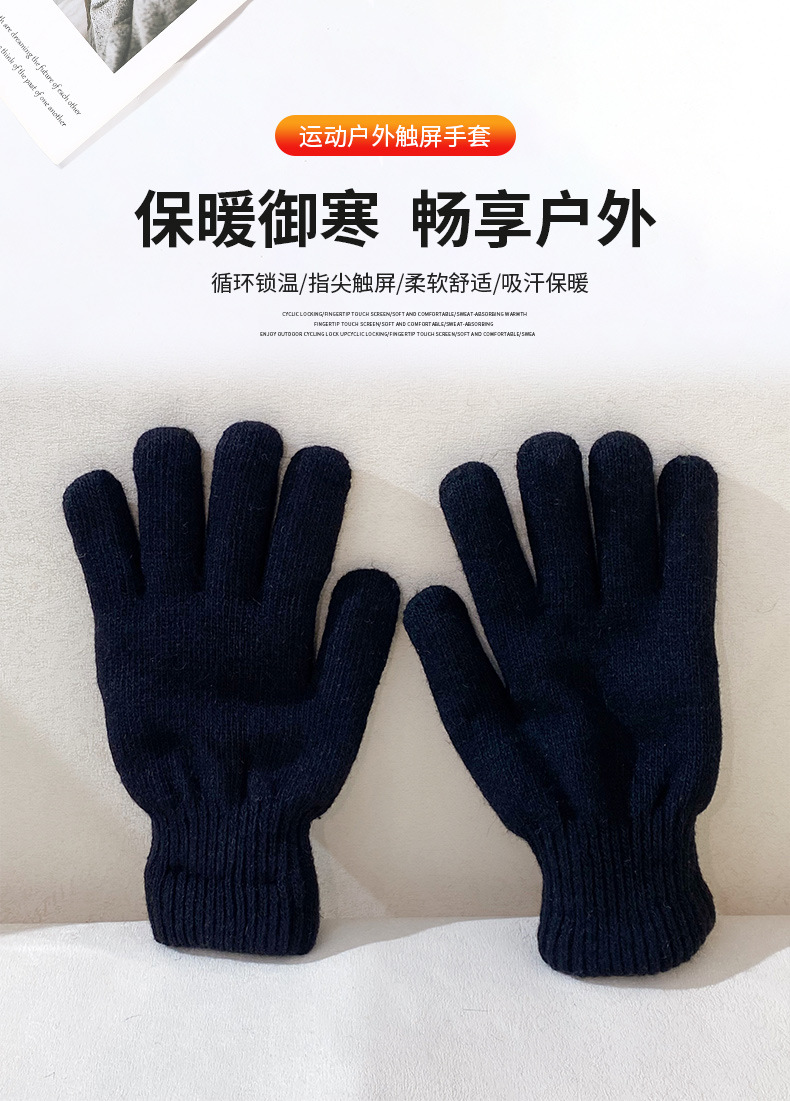 성인용 아크릴 원사 이중 장갑, 겨울용 심플한 손가락 장갑, 벨벳으로 두껍게, 방한 및 보온 도매