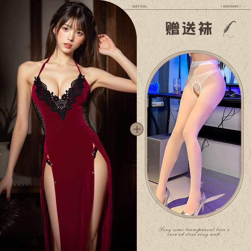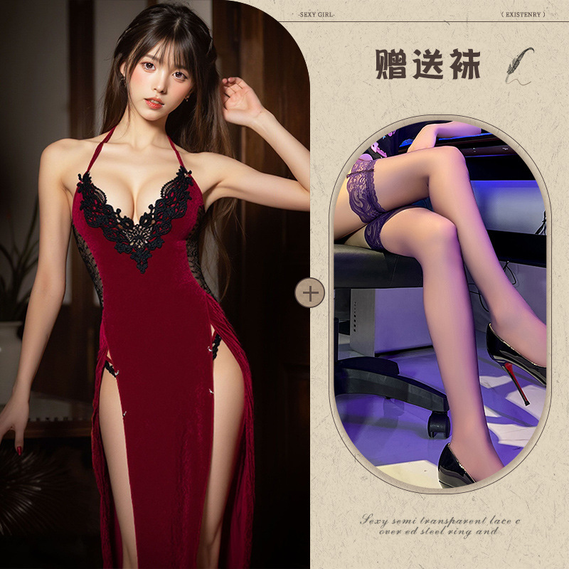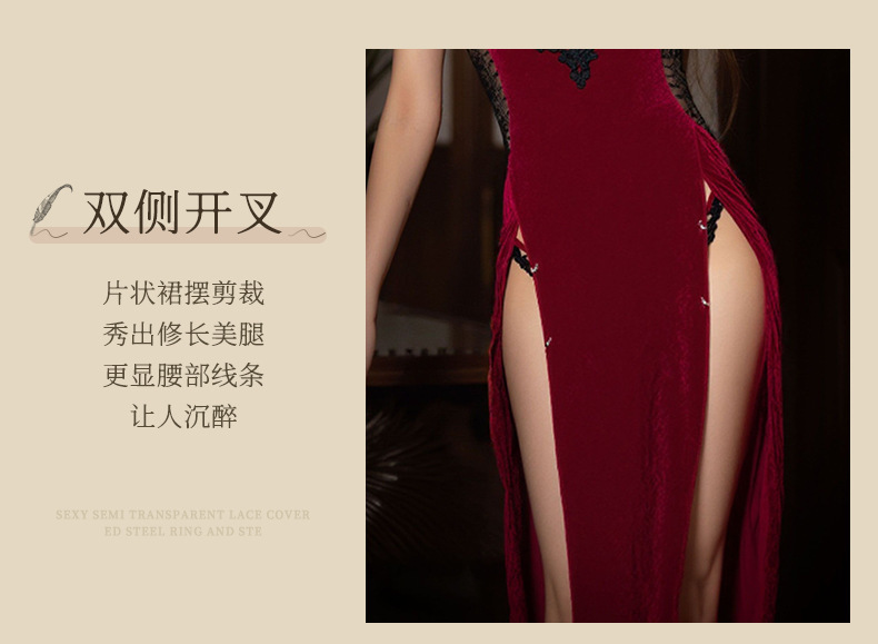빨간색 섹시한 속옷 치파오 섹시한 유니폼 여성스러운 성인 재미있는 잠옷 여성 침대 유혹 유혹 세트스토어 가기
