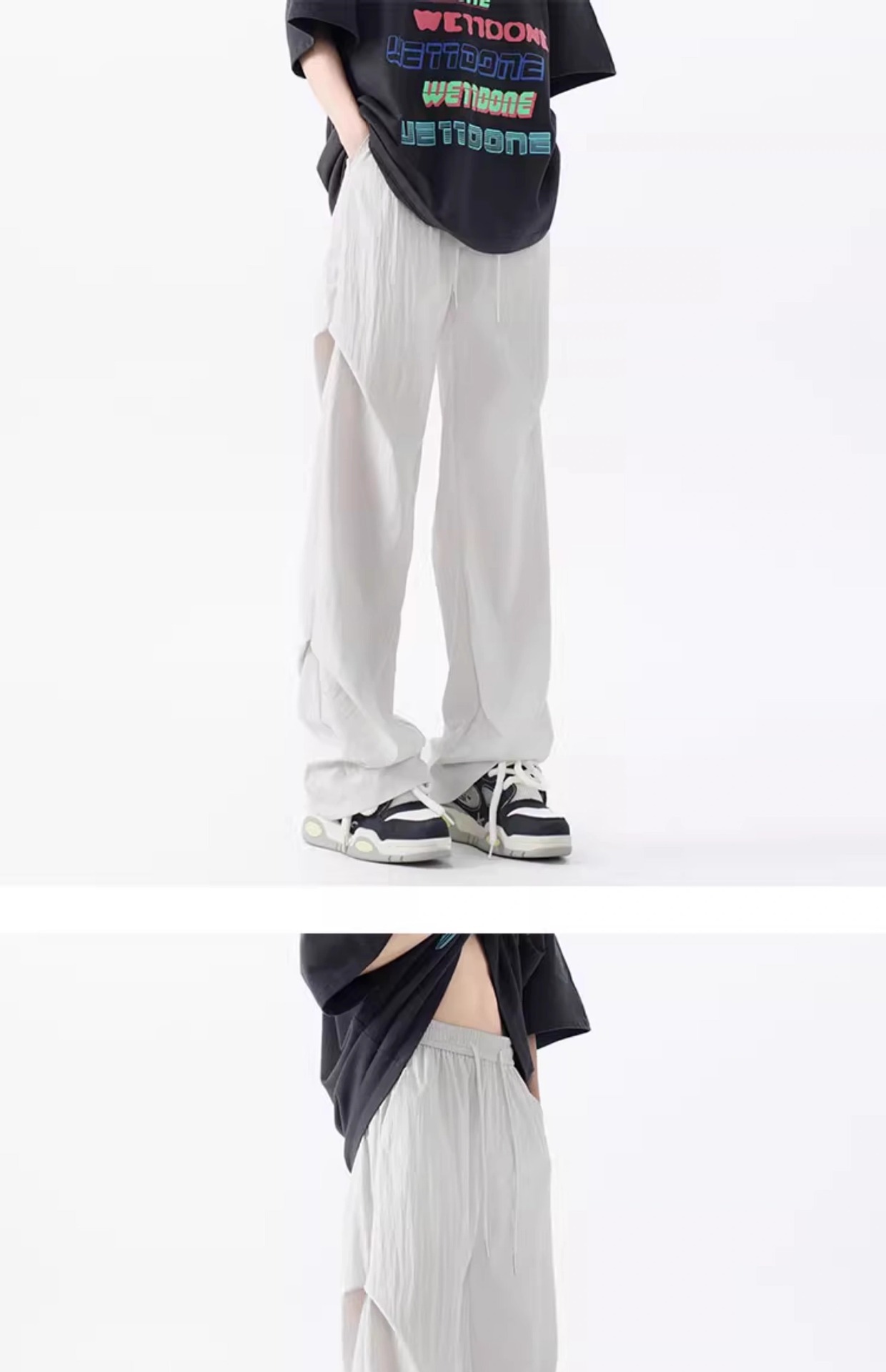 여름 트렌디 브랜드 아웃도어 마운틴 파라슈티스트 남성용 디컨스트럭티드 디자인 얇은 아이스 실크 팬츠 스트레이트 캐주얼 바지