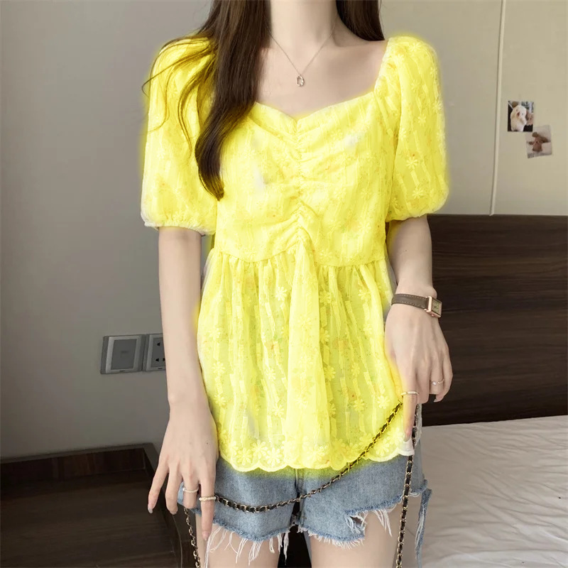 플러스 사이즈 여성 여름 신작 꽃무늬 쉬폰 셔츠 뚱뚱한 mm 배를 커버하고 슬림하고 우아한 반팔 달콤한 살을 숨기는 탑