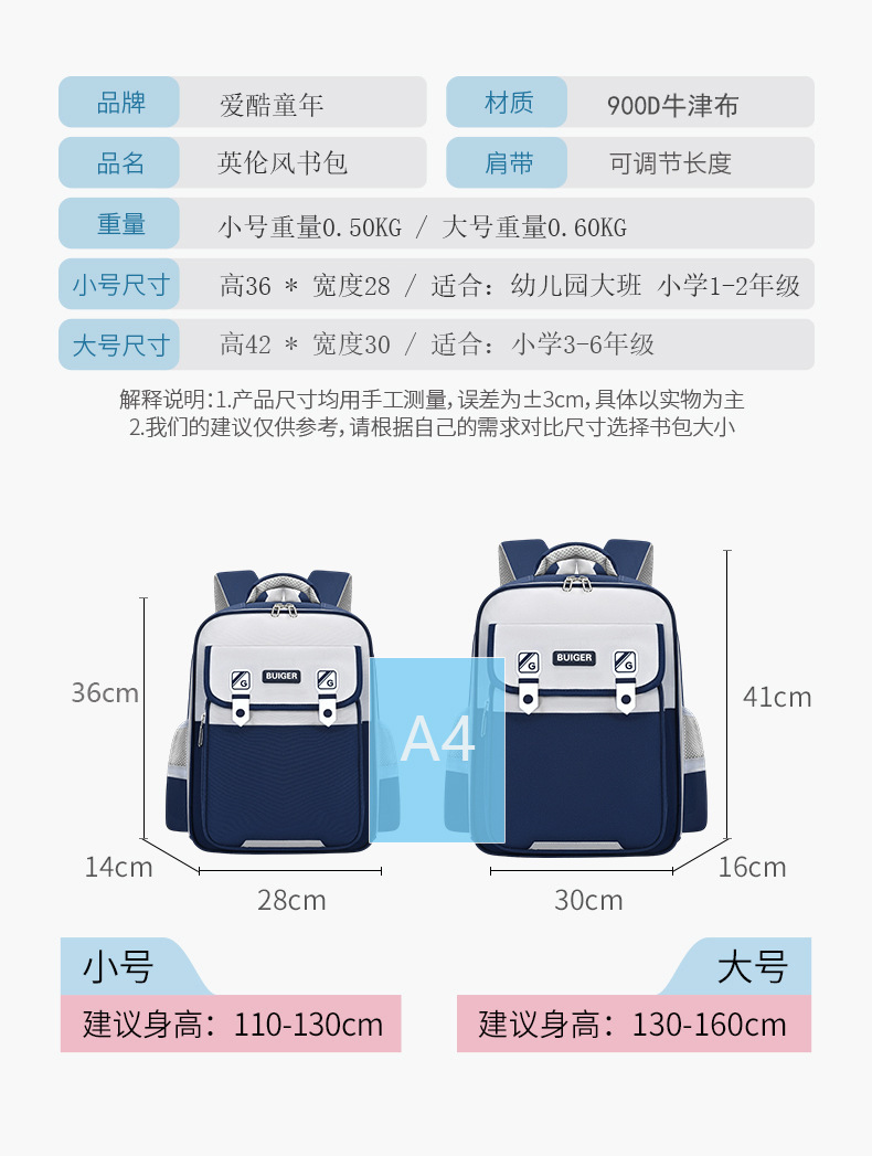 인쇄된 로고 초등학교 가방 남성과 여성 1-3-6 학년 훈련 수업 기관 교육 대용량 어린이 배낭