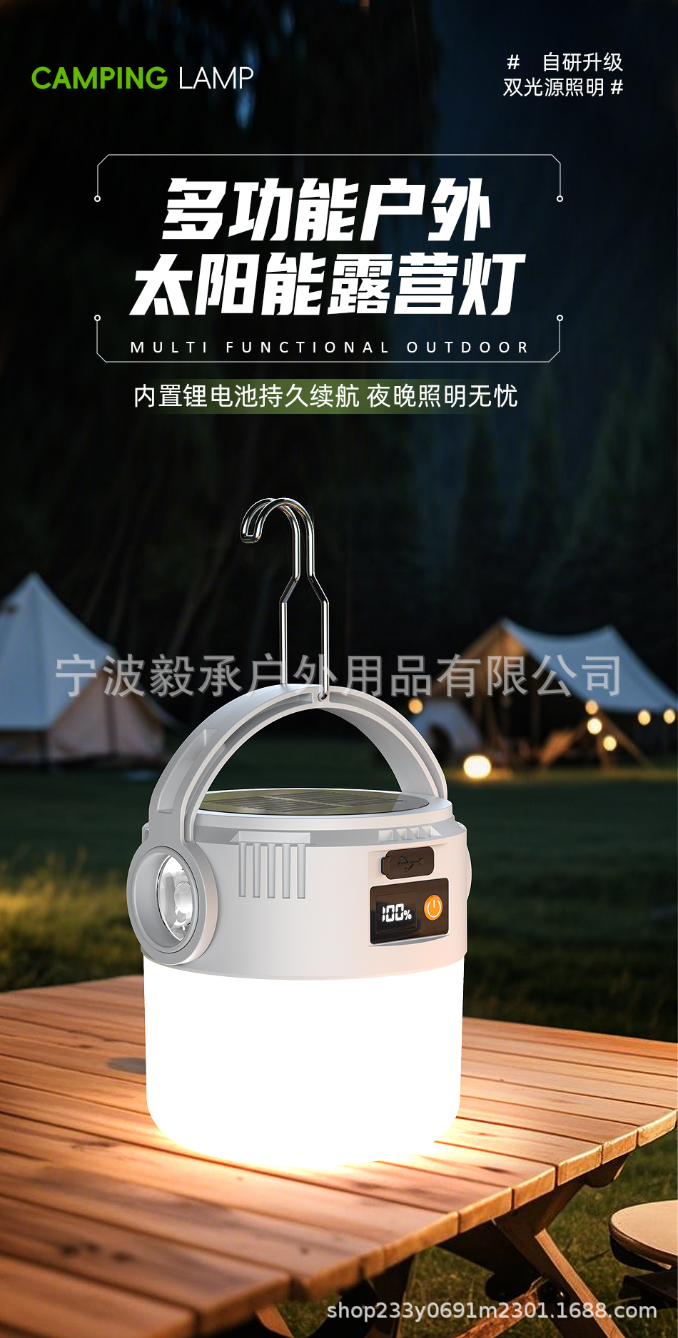 태양 캠핑 램프 야외 슈퍼 밝은 충전식 손전등 캠핑 전구 텐트 램프 조명 야간 시장 스톨 램프