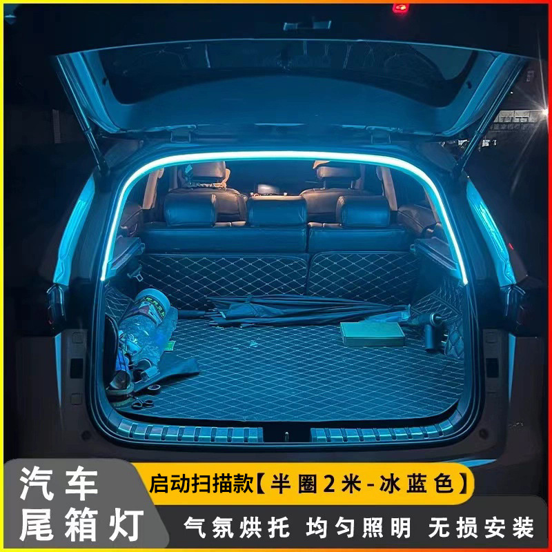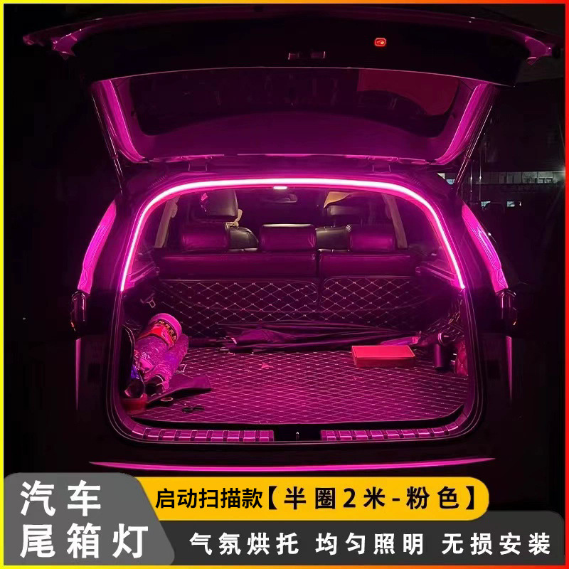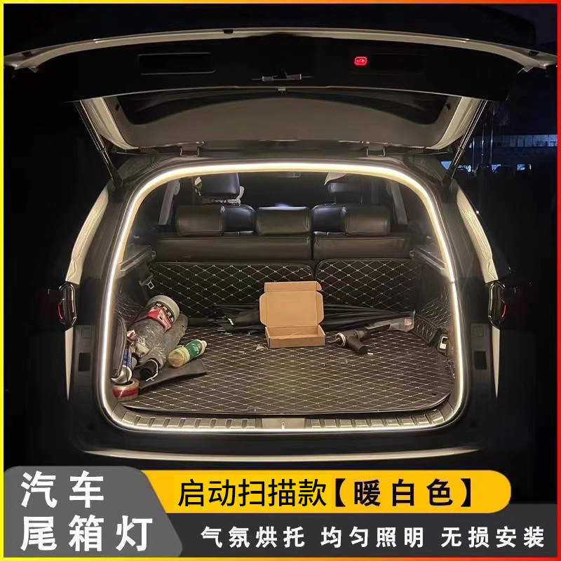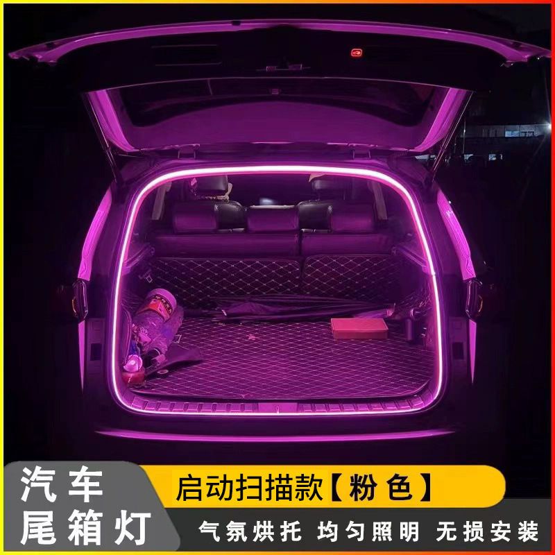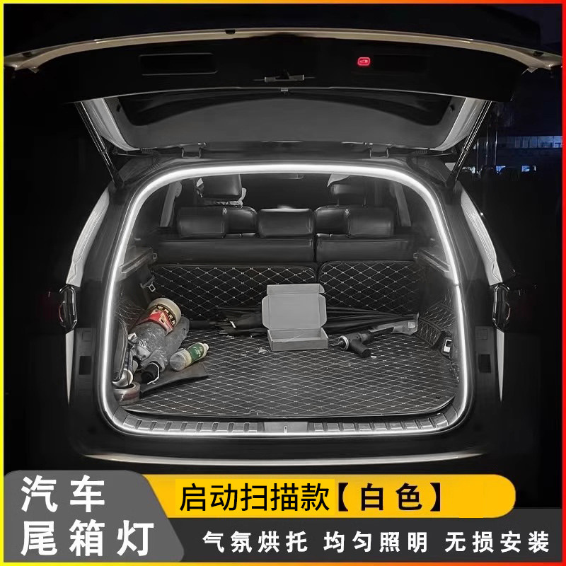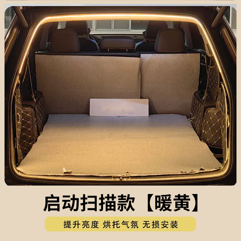 범용 자동차 트렁크 조명 주변 조명 스트립 수정 장식 LED 자동 감지 트렁크 조명 스캔 시작