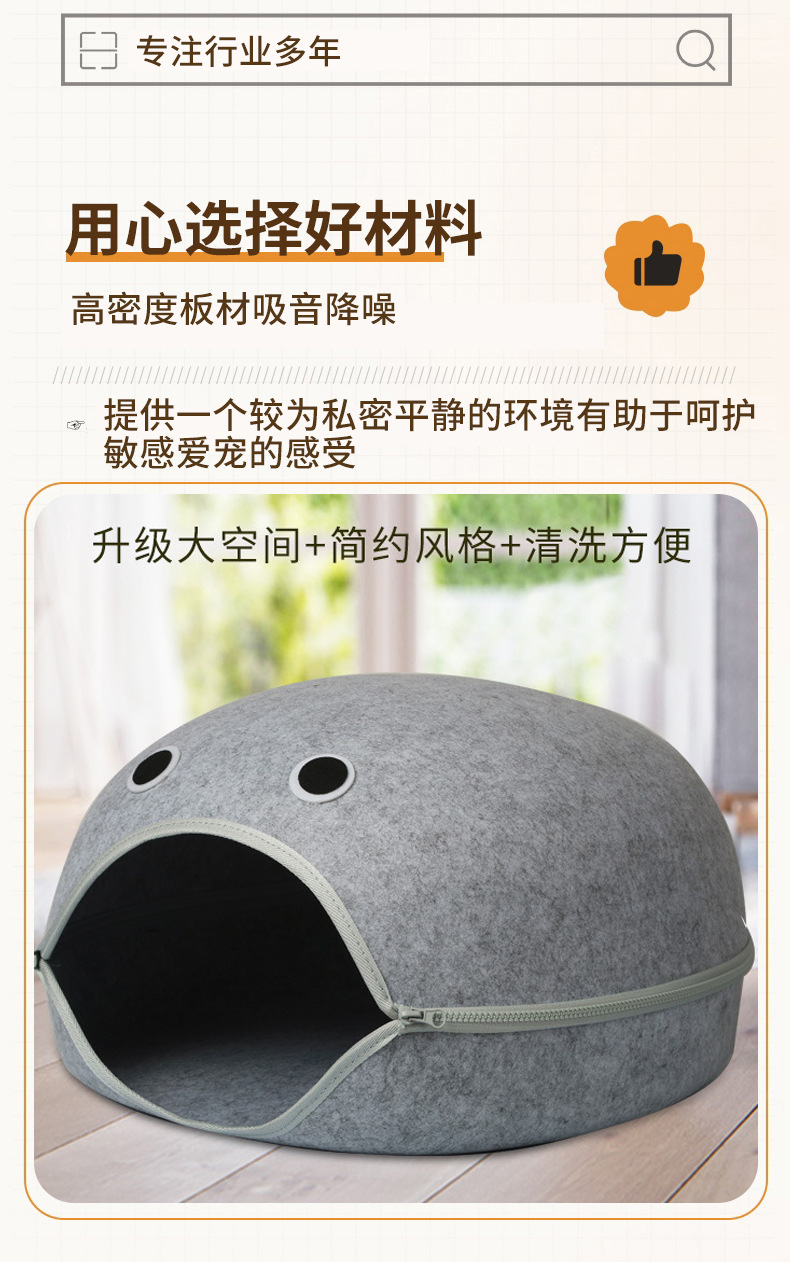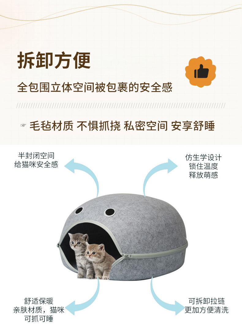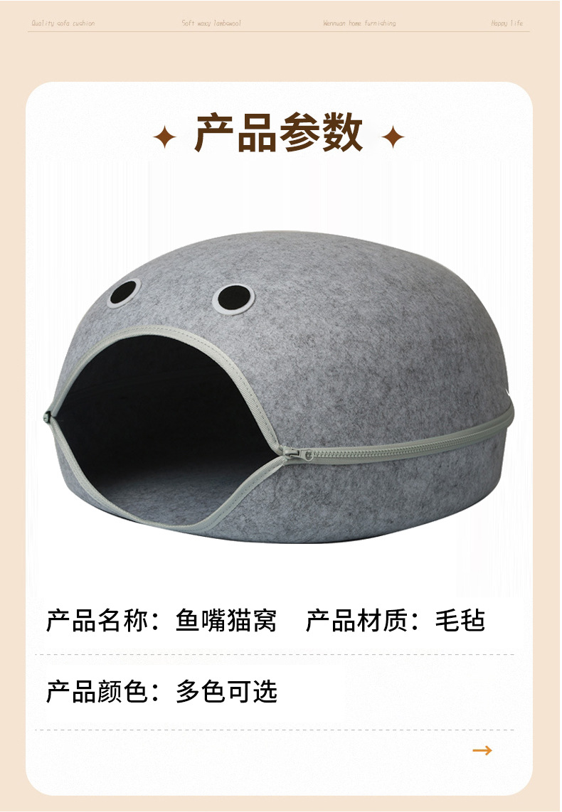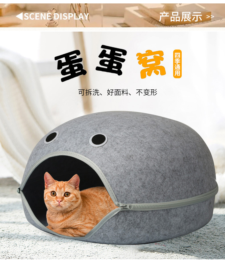 새로운 사계절 사용 가능한 펠트 고양이 둥지, 물고기 입 모양 디자인, 반밀폐형 펠트 둥지, 탈부착 및 세척 가능한 고양이 집, 고양이 집스토어 가기