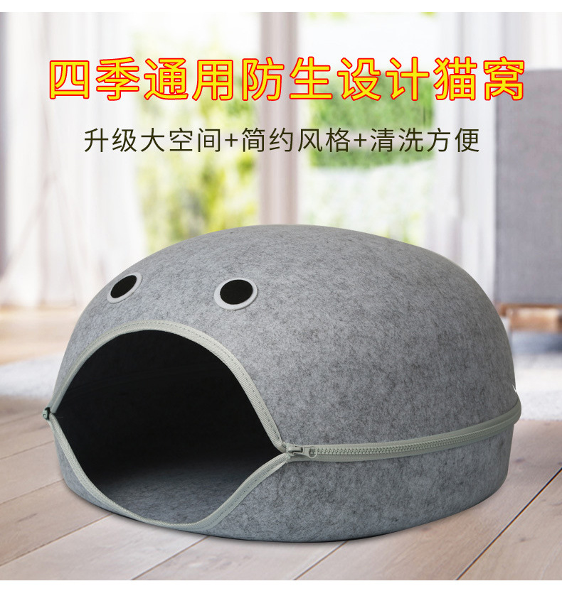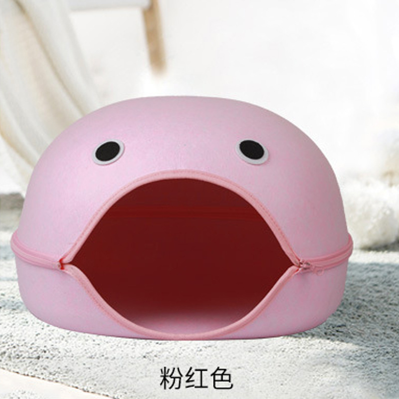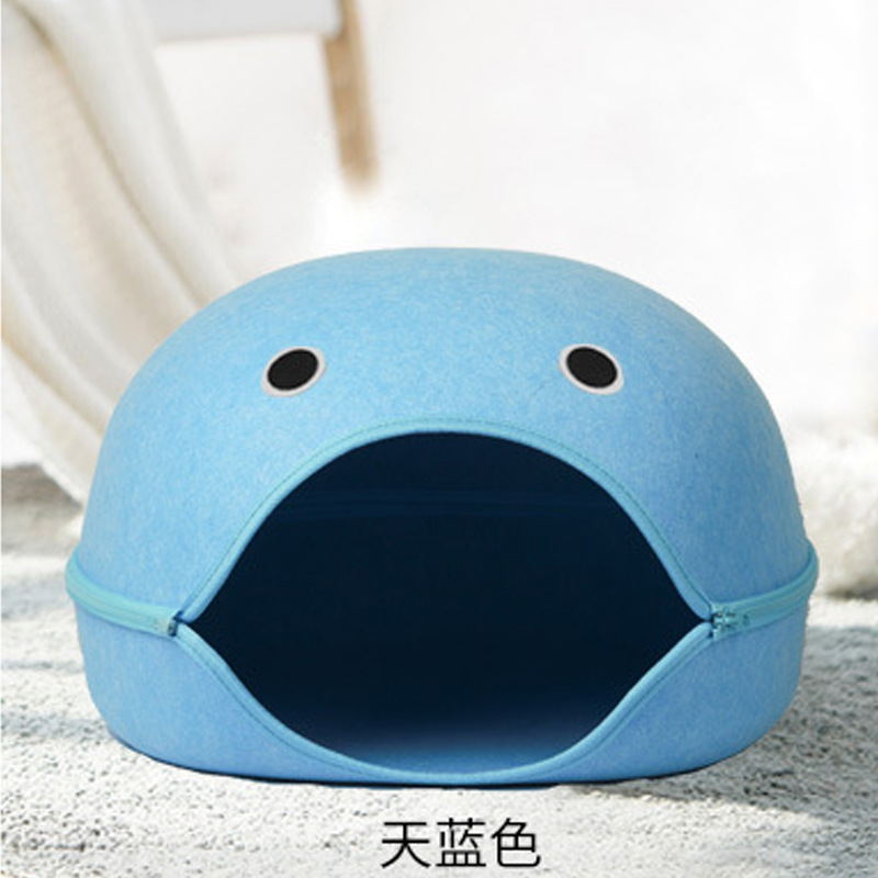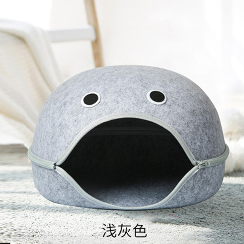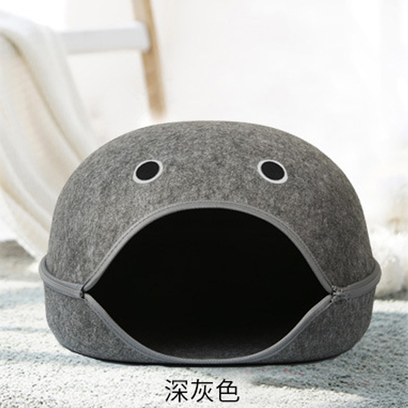 새로운 사계절 사용 가능한 펠트 고양이 둥지, 물고기 입 모양 디자인, 반밀폐형 펠트 둥지, 탈부착 및 세척 가능한 고양이 집, 고양이 집