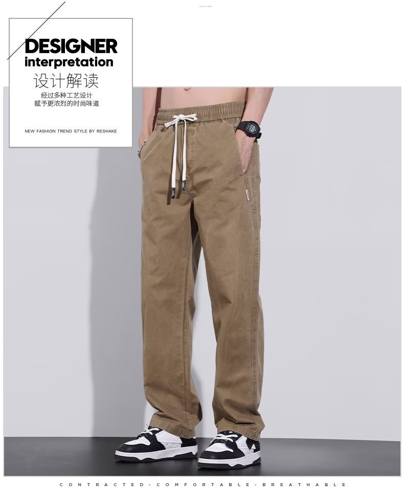 남성용 가을 트렌디 캐주얼 팬츠, 아메리칸 레트로 신축성 있는 허리 루즈 스트레이트 스포츠 팬츠, 패셔너블한 워크웨어 팬츠스토어 가기