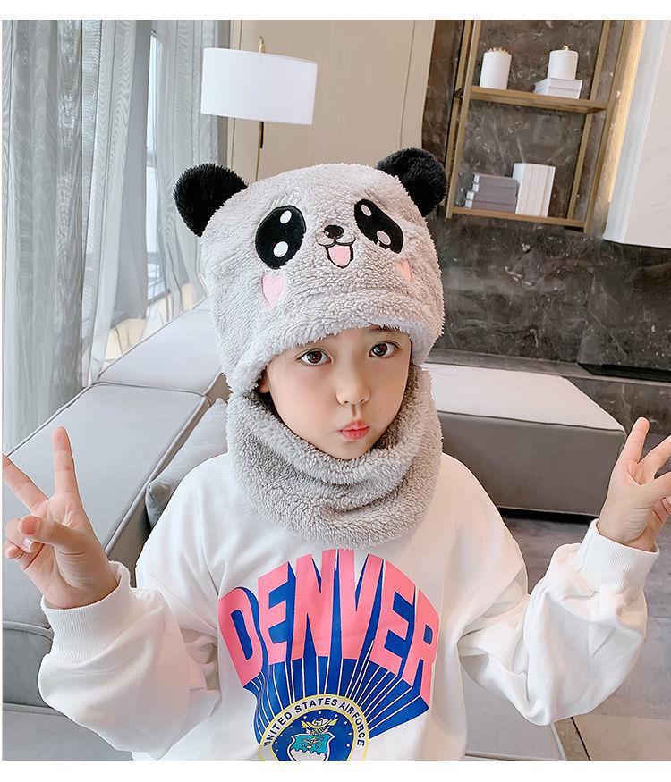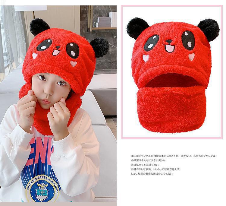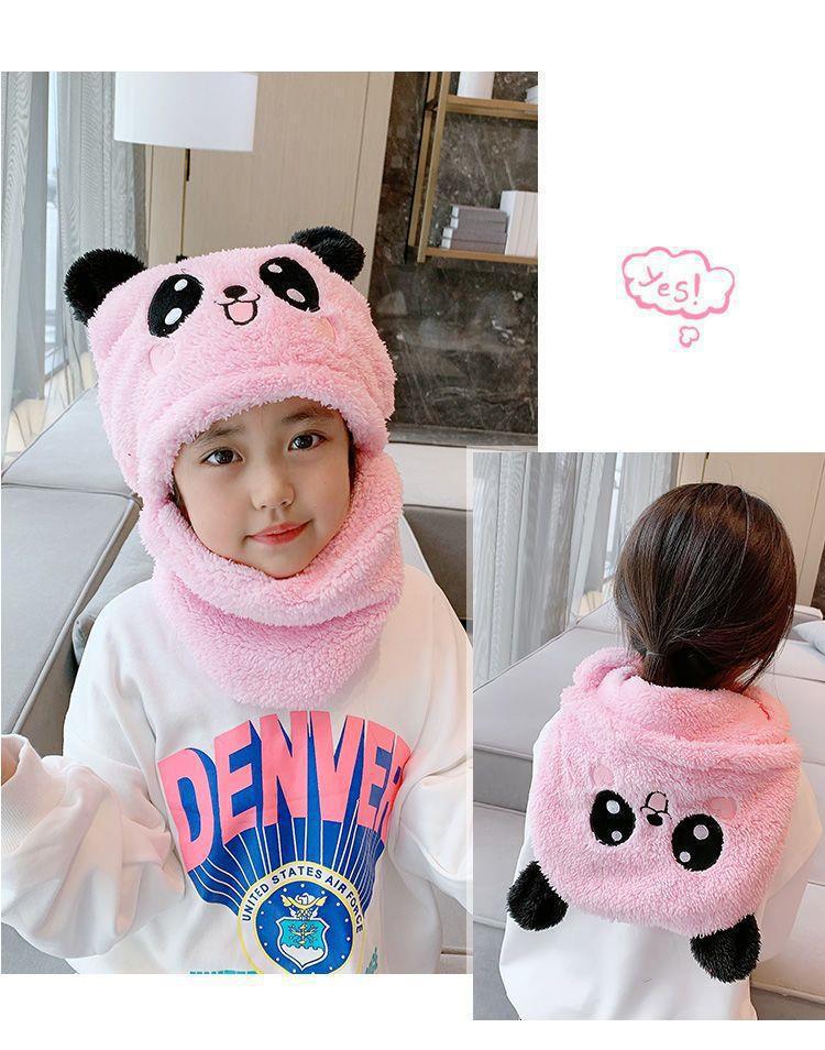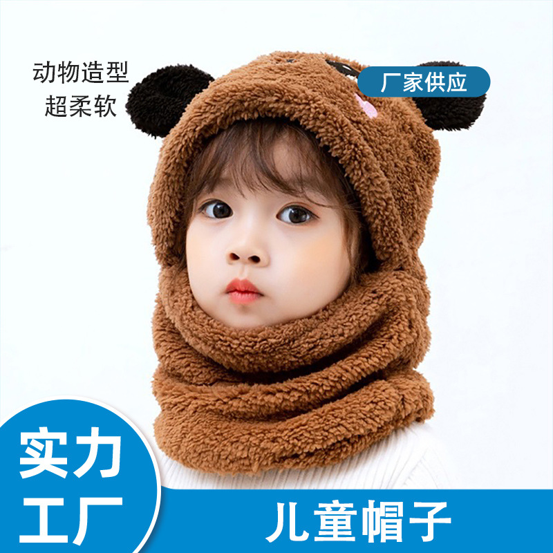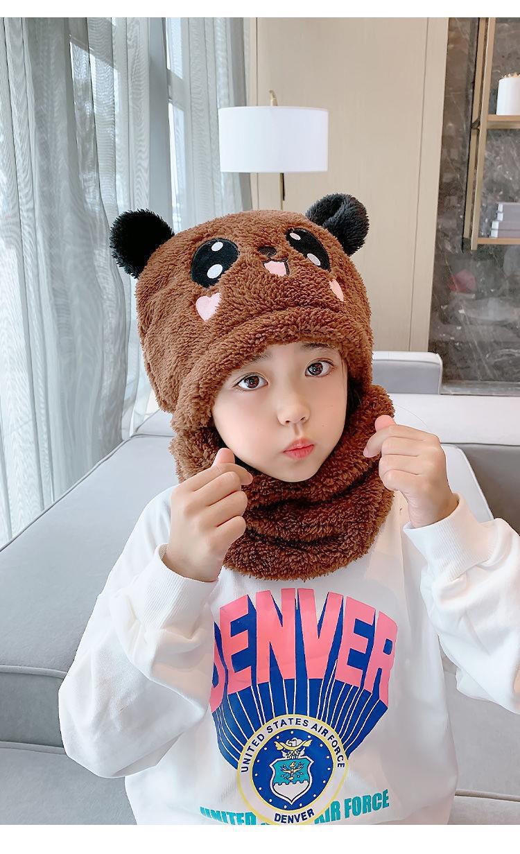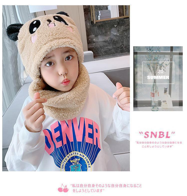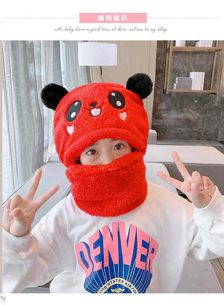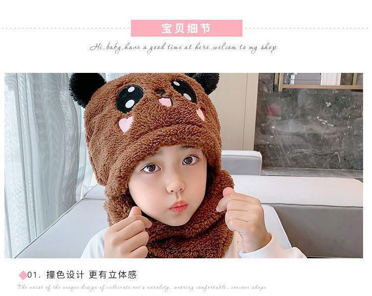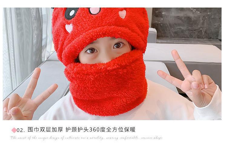 어린이 모자 소녀 소년 가을, 겨울 모자와 스카프 일체형 귀여운 두꺼운 따뜻한 아기 얼굴 가리개 귀 보호 모자