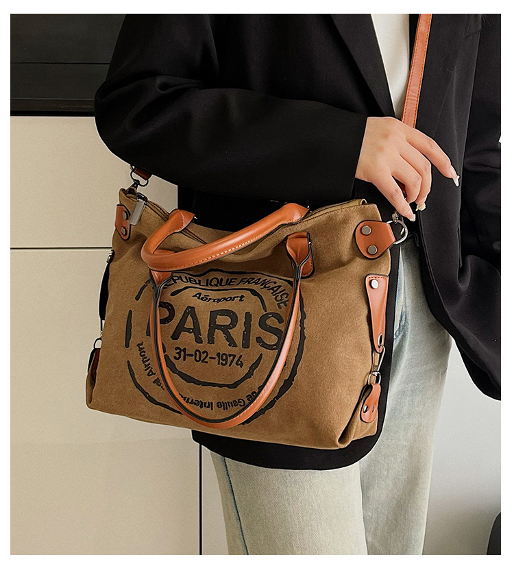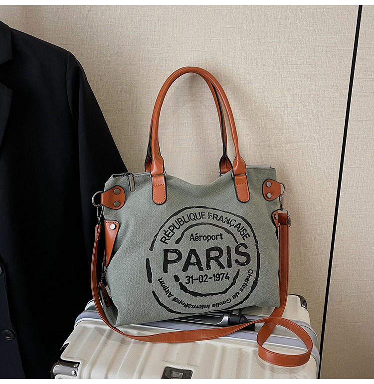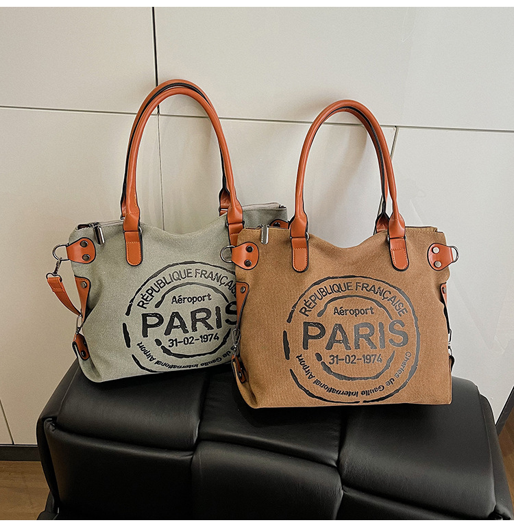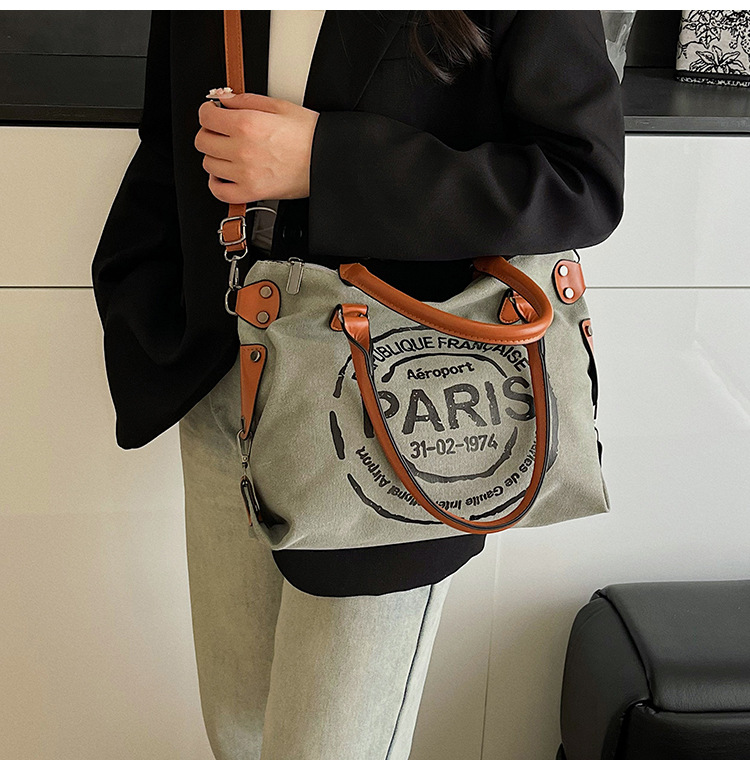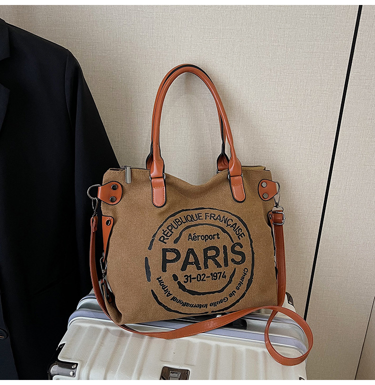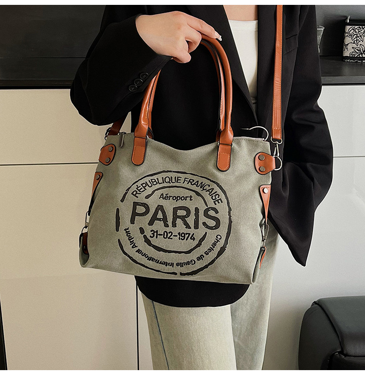 국경 간 복고풍 패션 핸드백 대용량 새로운 캐주얼 통근 편지 다목적 캔버스 가방 싱글 숄더 여성용 가방스토어 가기