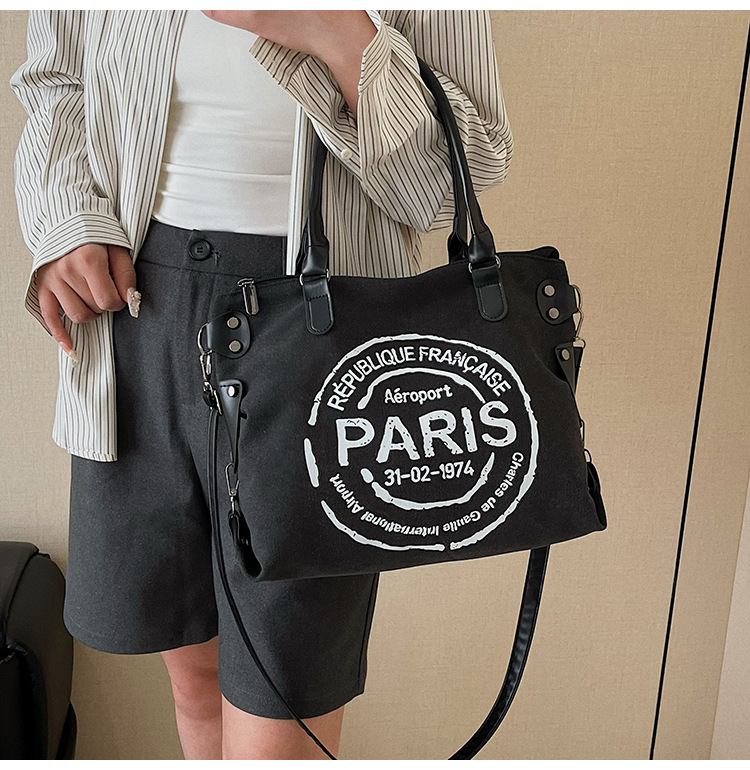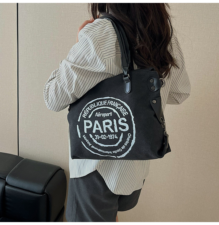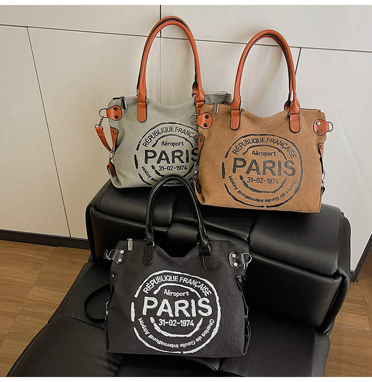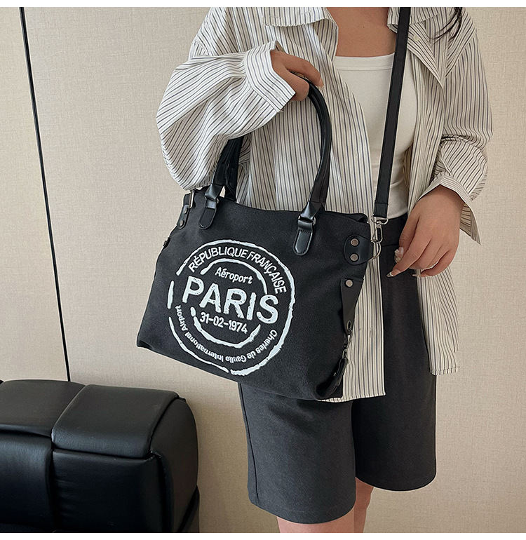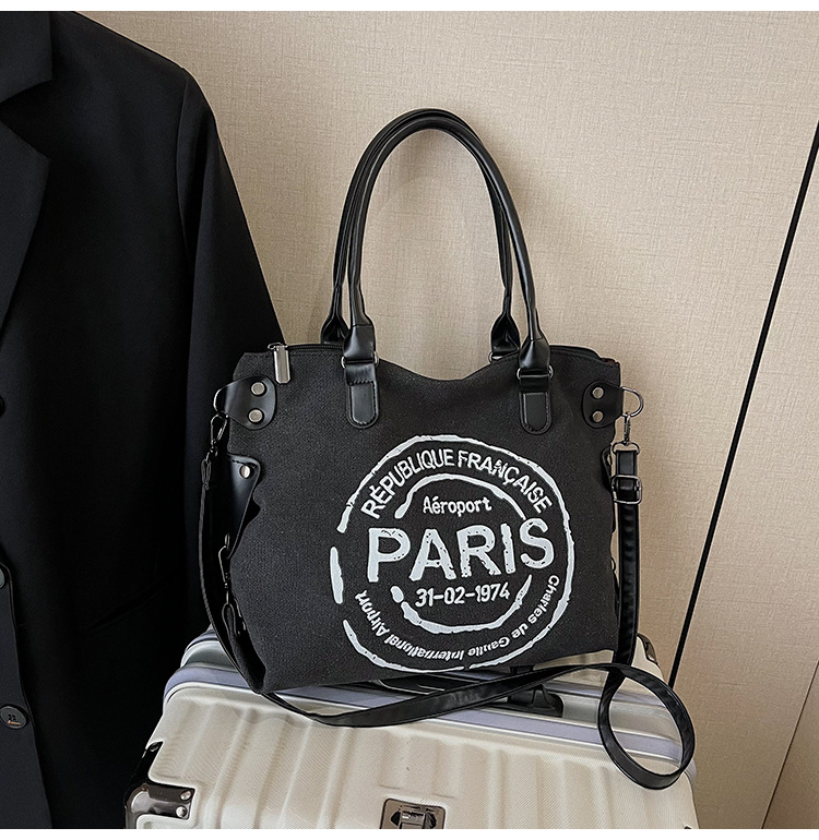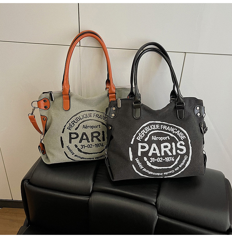 국경 간 복고풍 패션 핸드백 대용량 새로운 캐주얼 통근 편지 다목적 캔버스 가방 싱글 숄더 여성용 가방스토어 가기