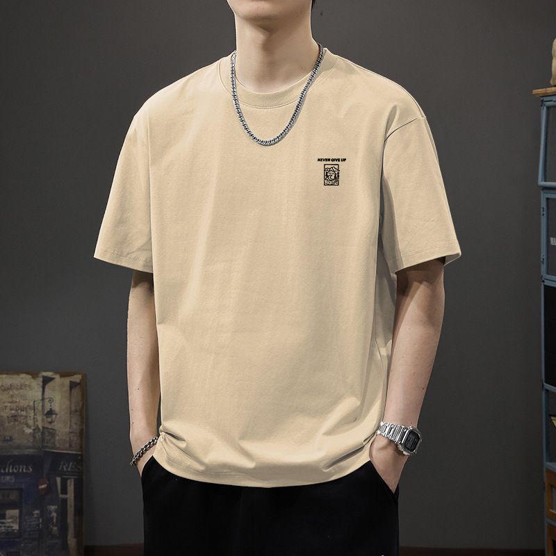 아메리칸 레트로 헤비웨이트 퓨어 코튼 화이트 티셔츠 반팔 반팔 셔츠 남성 여름 이너 반팔 의류스토어 가기