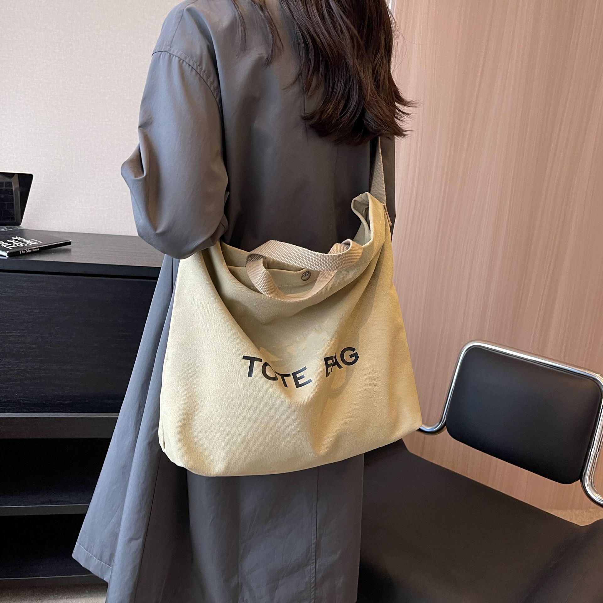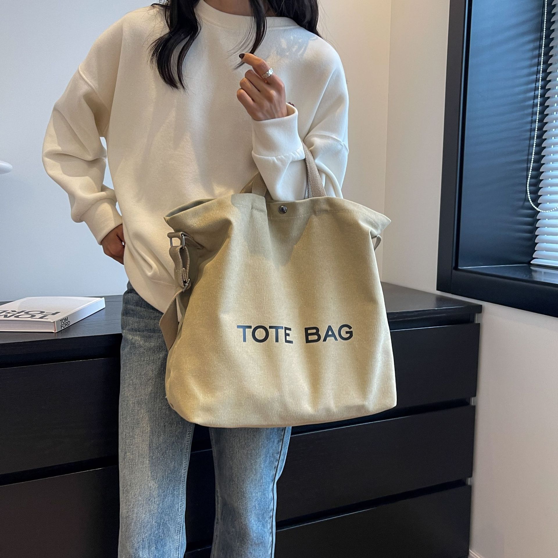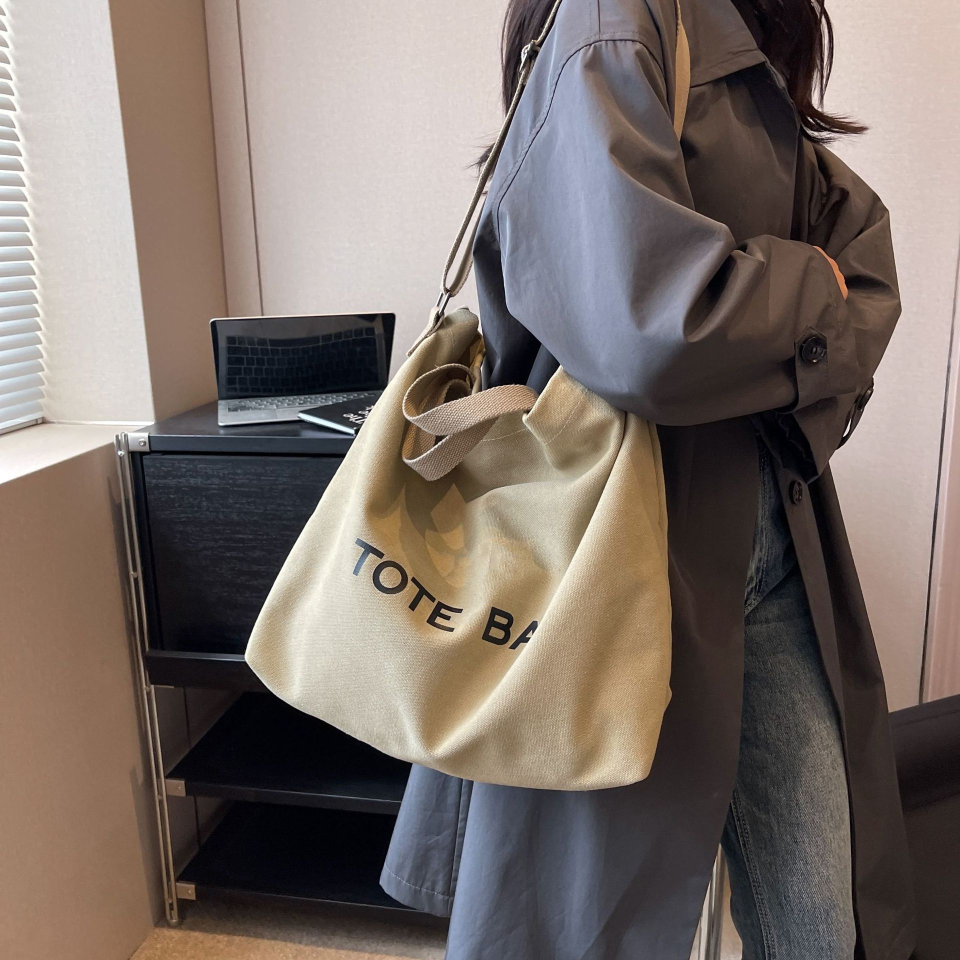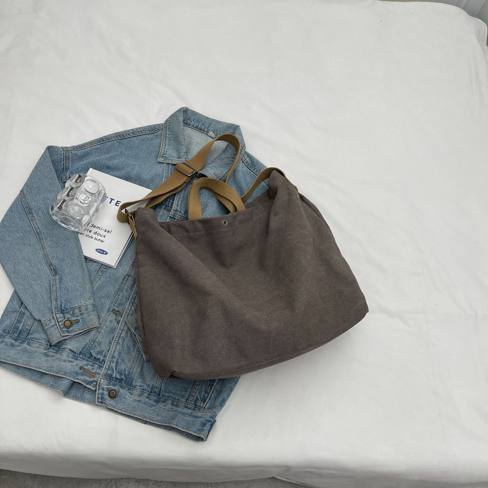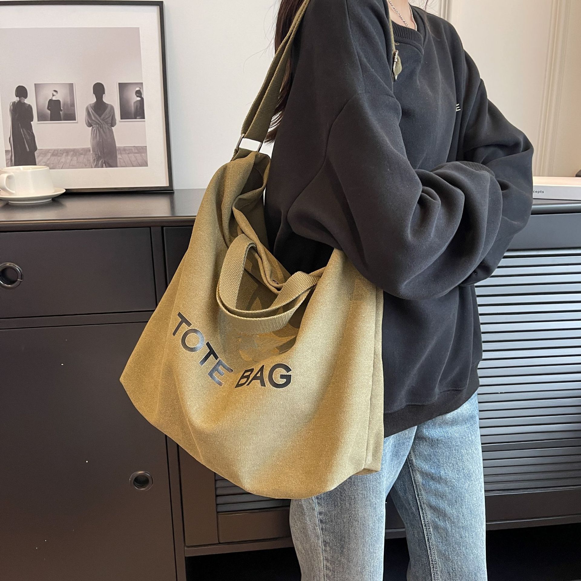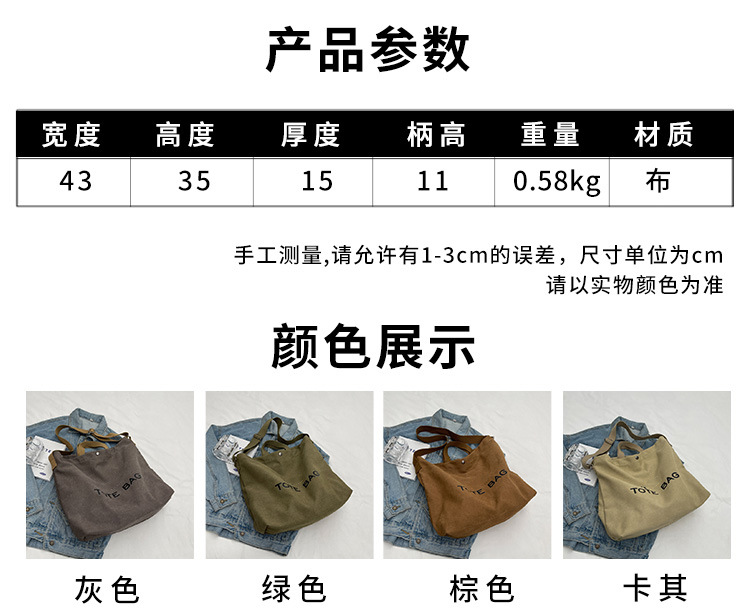 직장 및 통근을 위한 대용량 크로스보더 레트로 캔버스 숄더백, 학생용 토트백, 직장 및 수업용 휴대용 크로스백스토어 가기