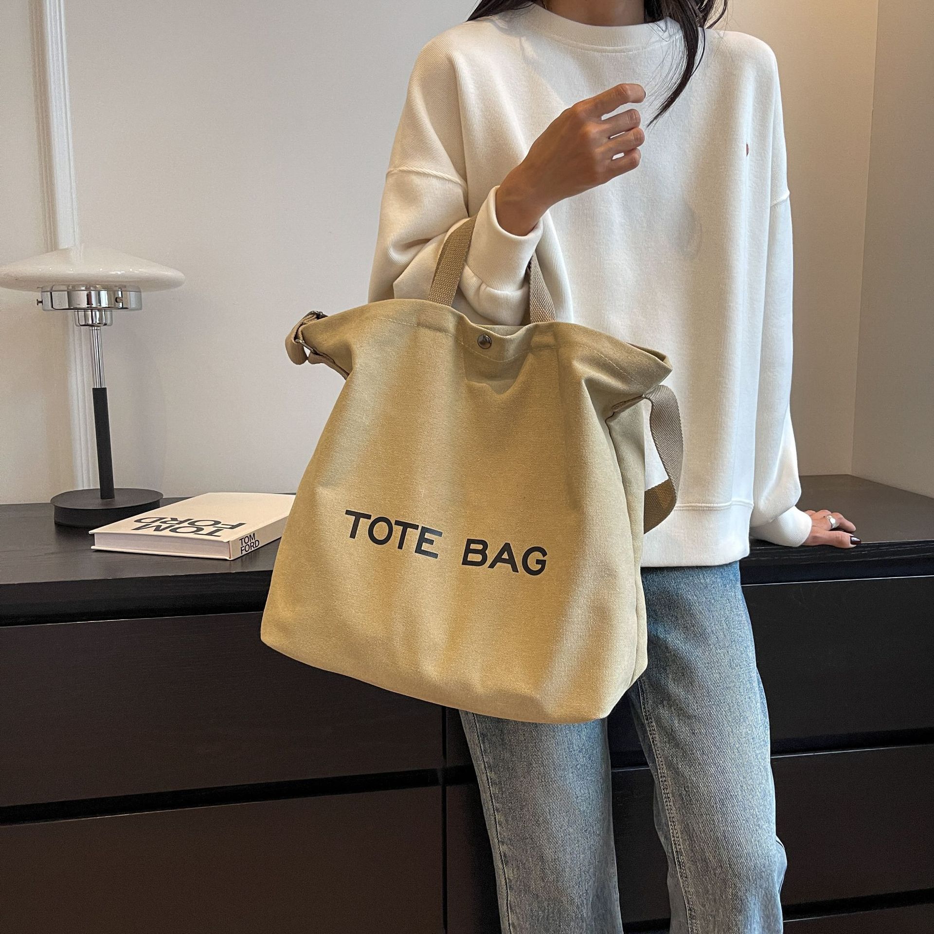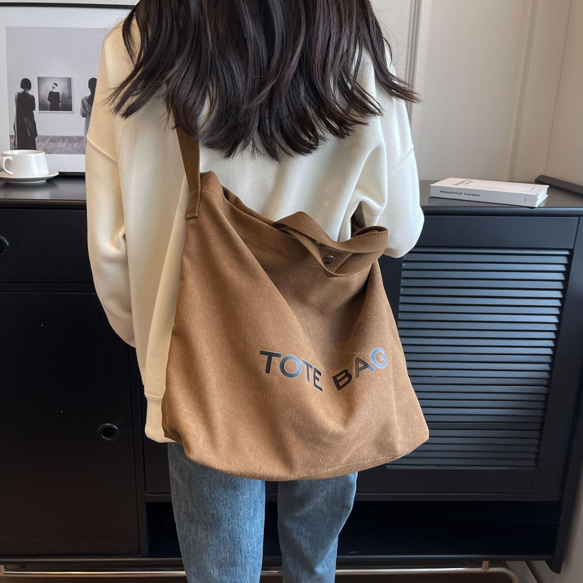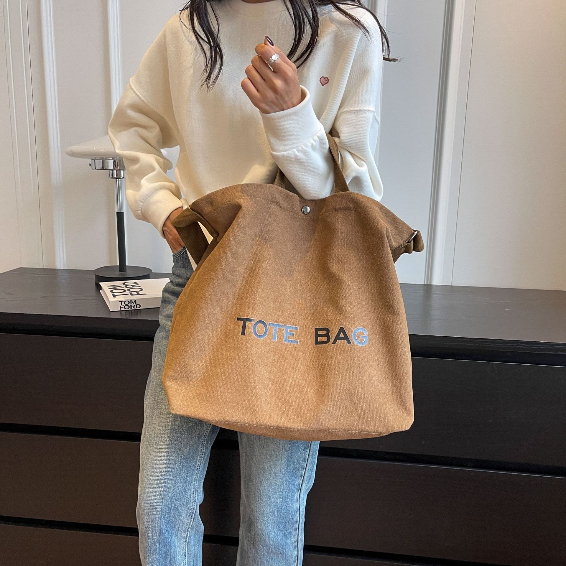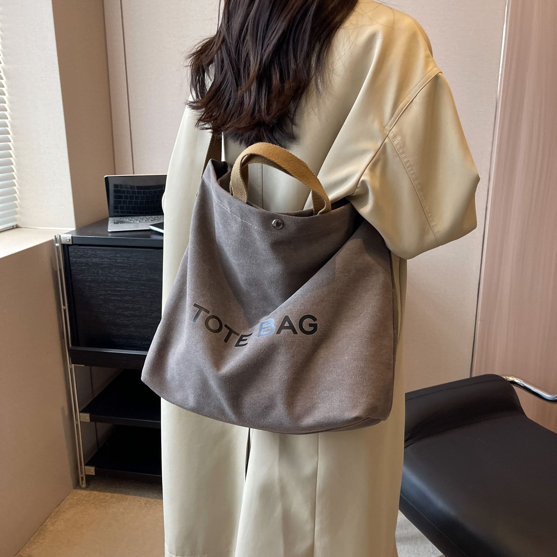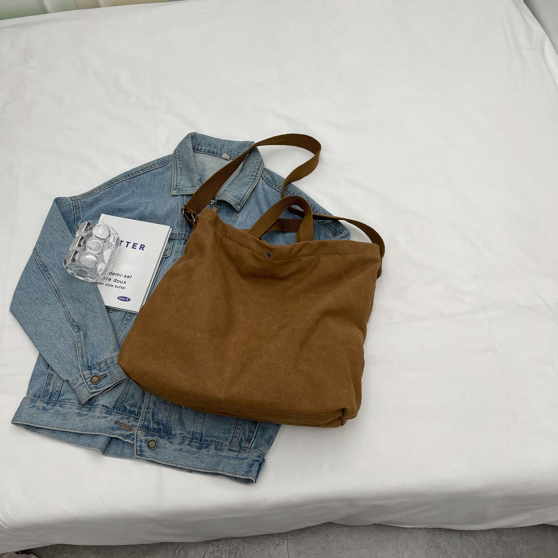 직장 및 통근을 위한 대용량 크로스보더 레트로 캔버스 숄더백, 학생용 토트백, 직장 및 수업용 휴대용 크로스백스토어 가기