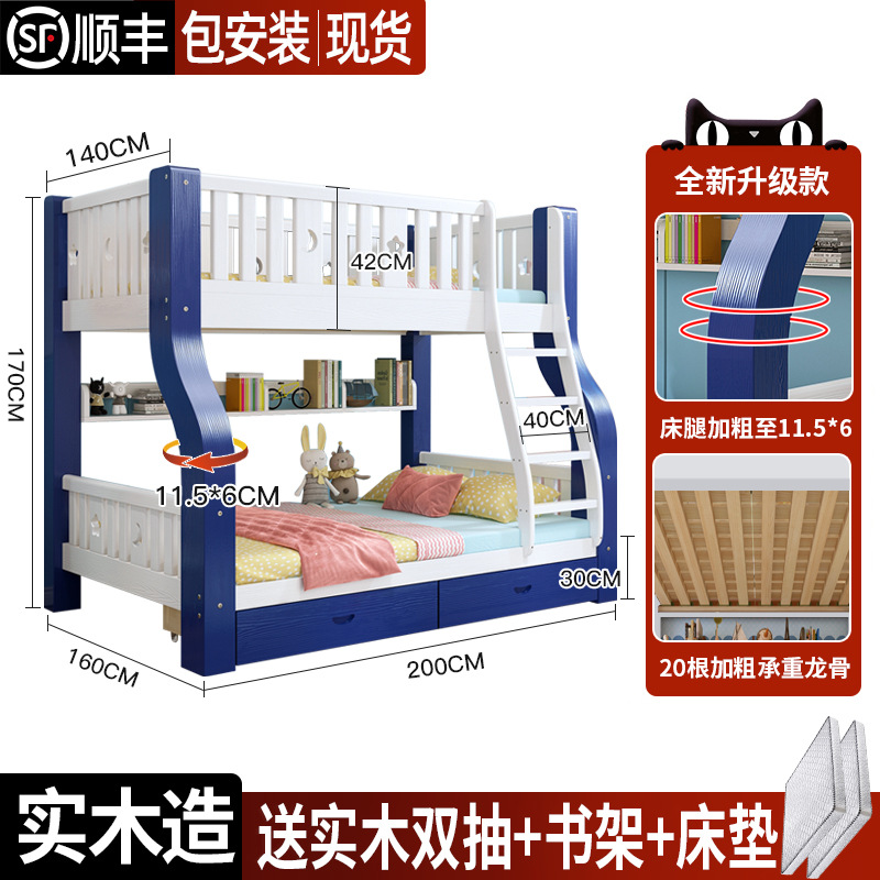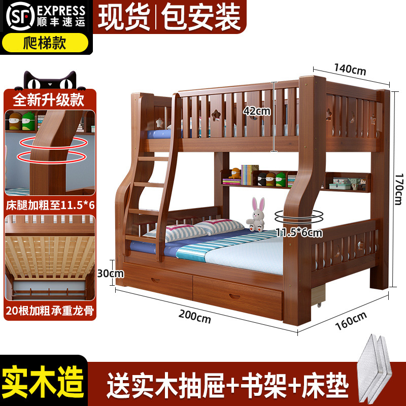 도매 이층 침대, 고급 원목 어린이 슬라이드 침대, 2층 조합 이층 침대, 옷장, 이층 침대, 소형 아파트스토어 가기