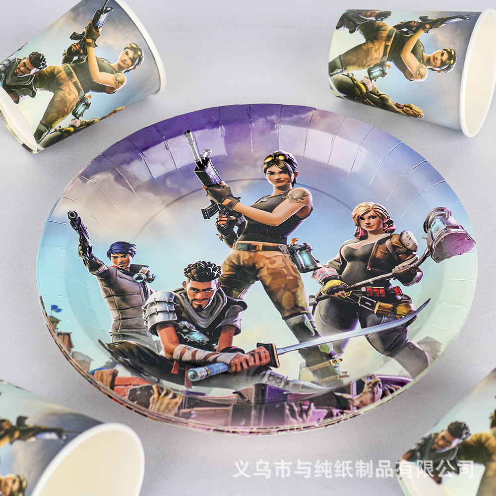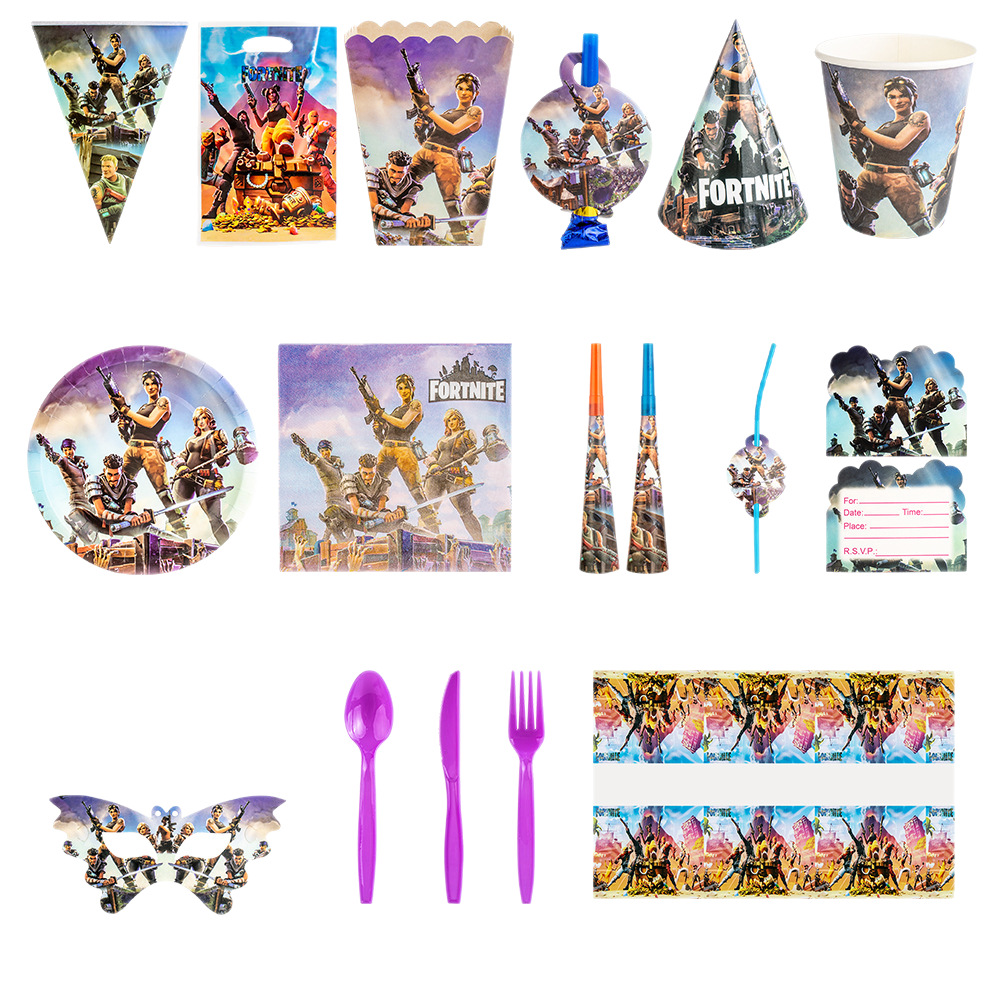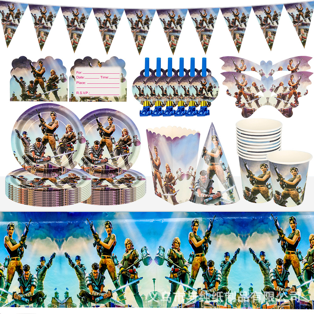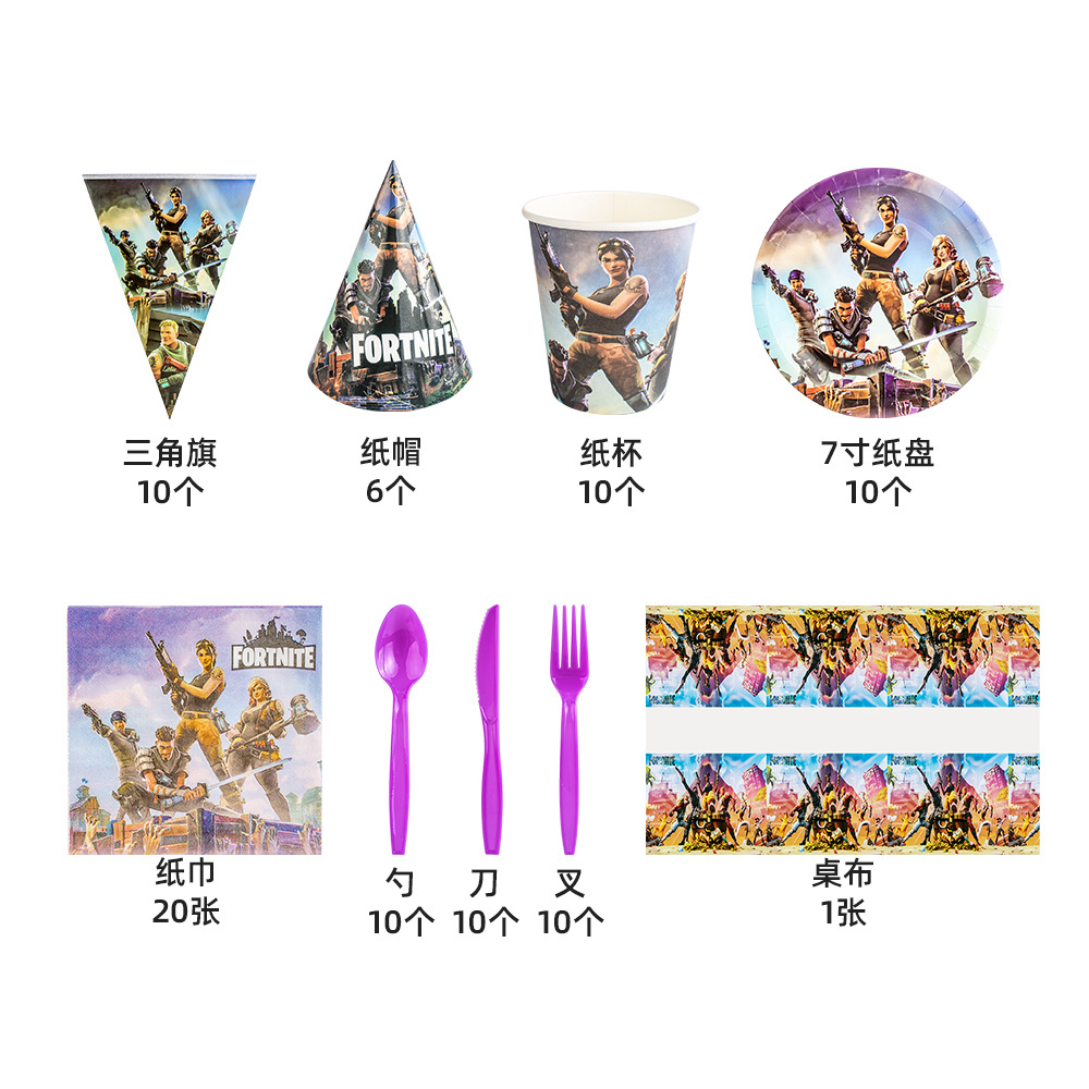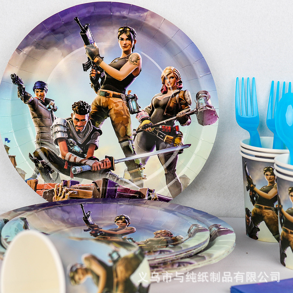 국경 간 총격전 게임 테마 Fortnite 생일 파티 장난감 용품 식탁보 종이컵 접시 깃발 세트스토어 가기