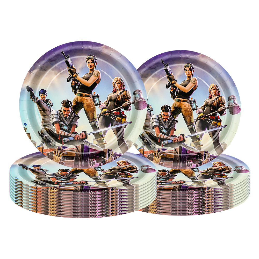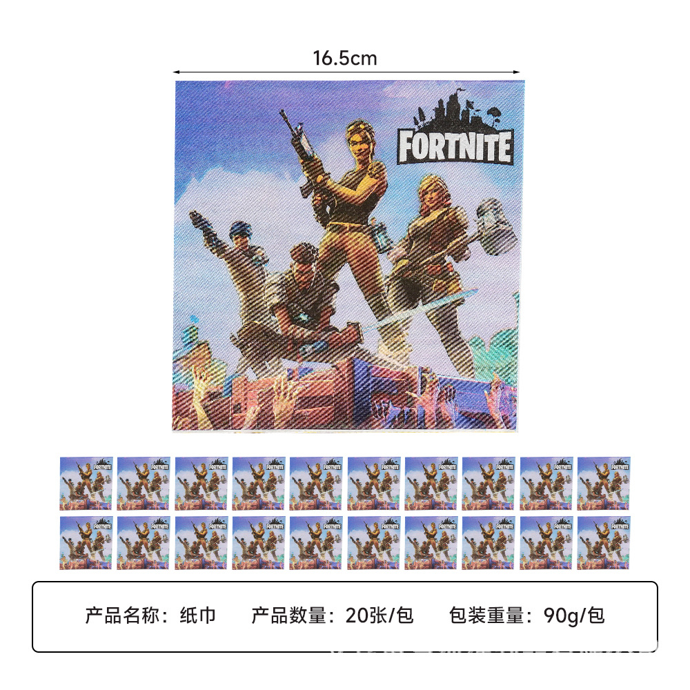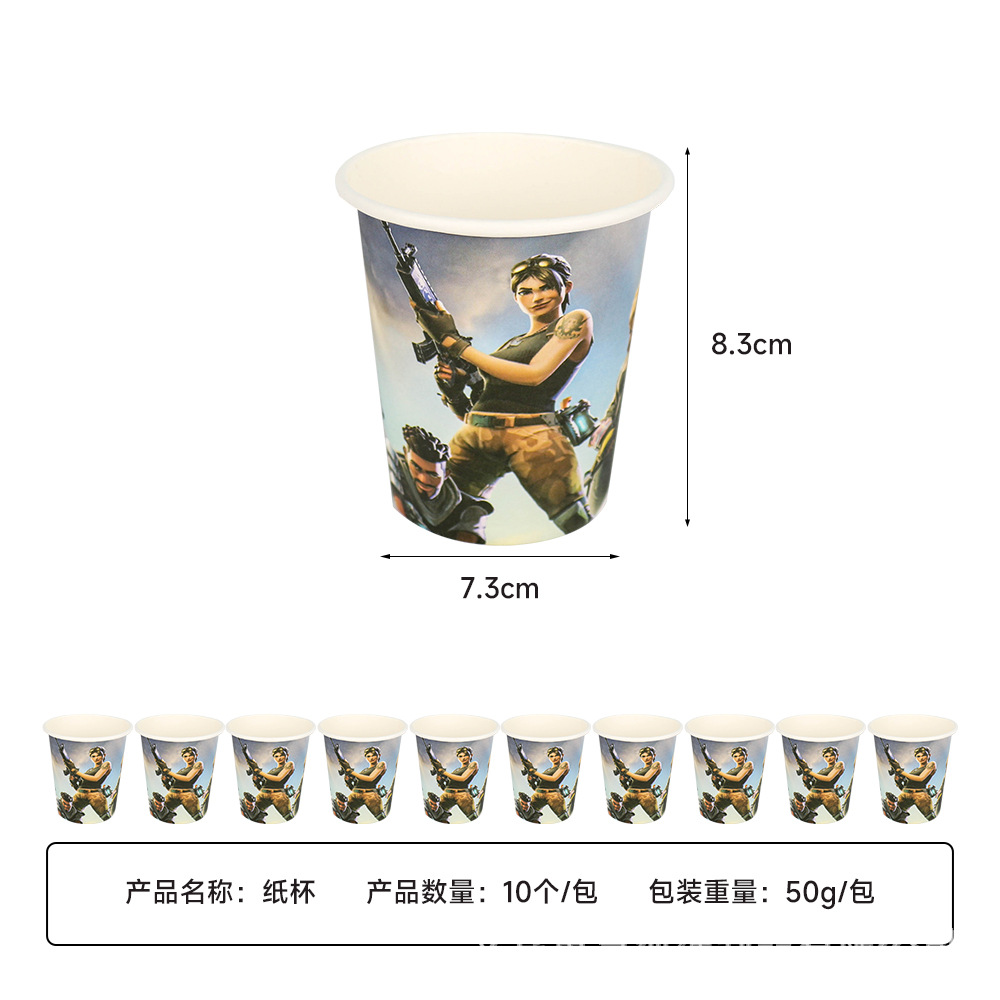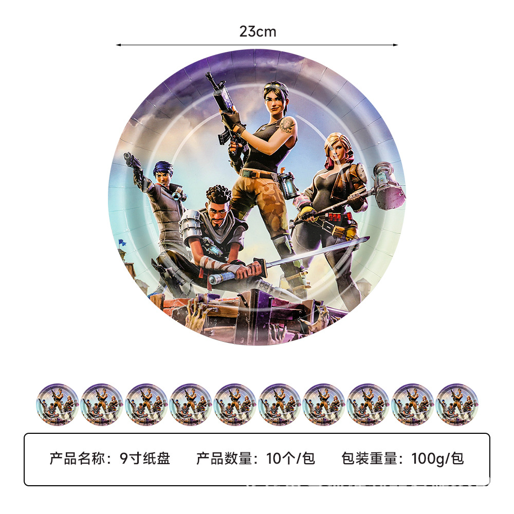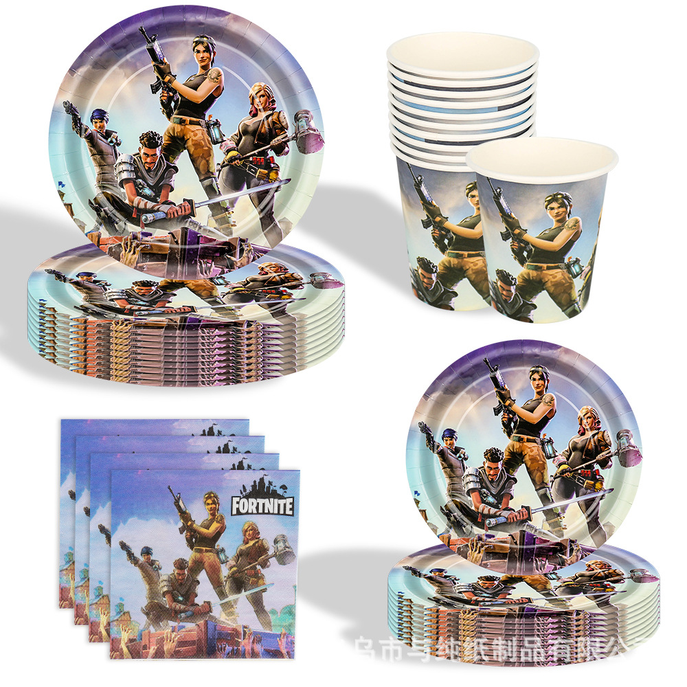 국경 간 총격전 게임 테마 Fortnite 생일 파티 장난감 용품 식탁보 종이컵 접시 깃발 세트스토어 가기